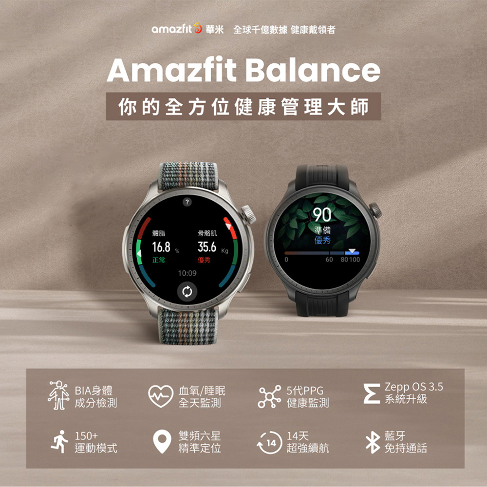 名稱:【Amazfit】Balance全方位健康管理智慧手錶-灰