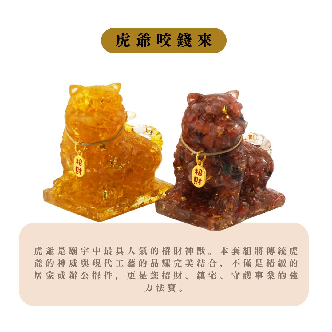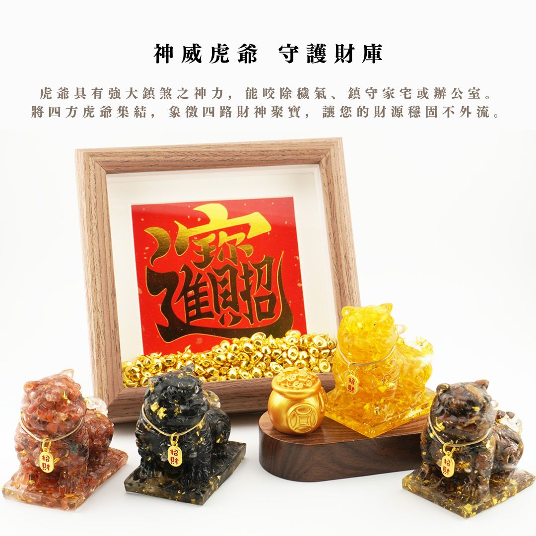Hourrae荷萊 獨家訂製 神威聚財 招財虎爺 一桶金 木座 水晶擺件 開店禮 生日禮