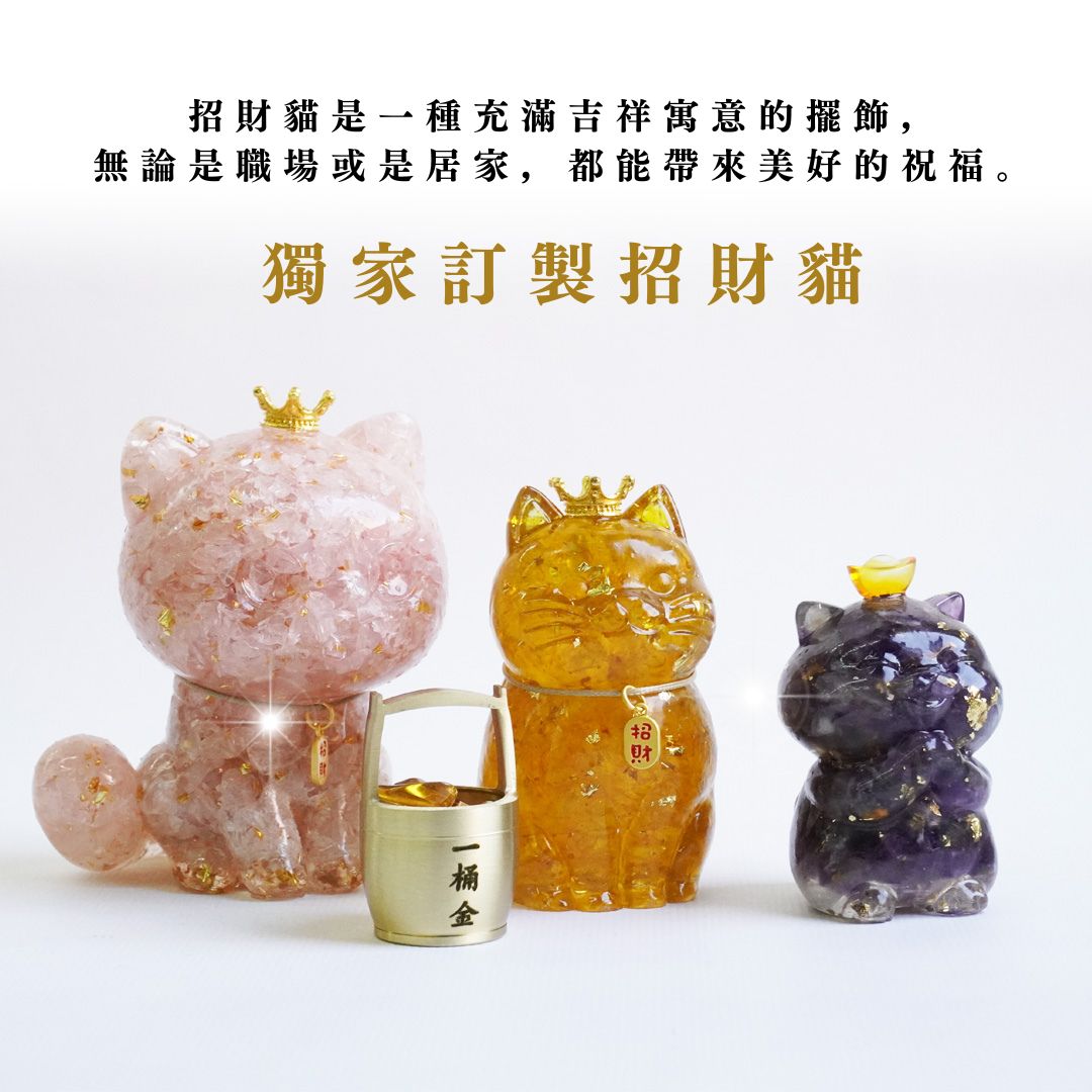 Hourrae荷萊 招財寶盒 開運招財貓 一桶金 木座組 生日禮 開店禮 水晶擺件
