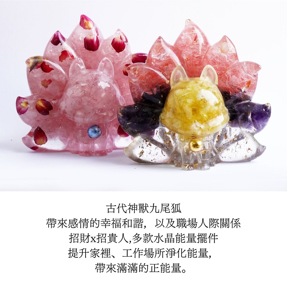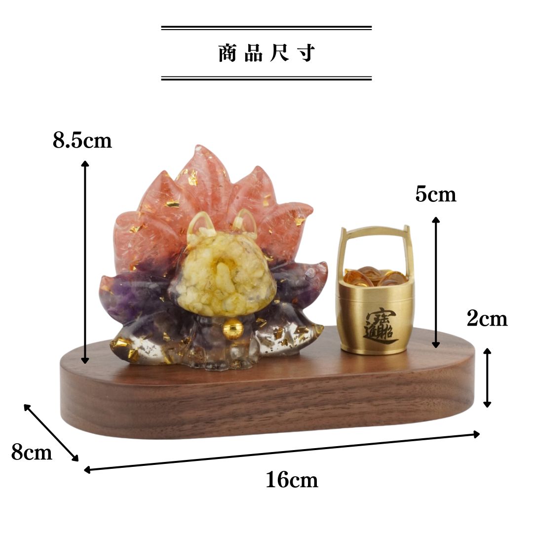 Hourrae荷萊 開運九尾狐 招財寶盒 一桶金 木座 水晶擺件