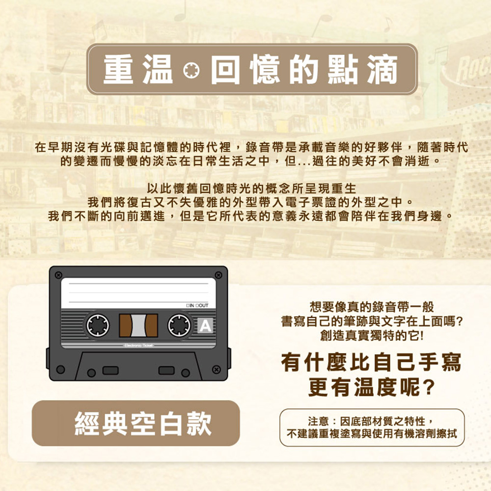 復古又不失優雅的造型可書寫自己的筆跡與文字電子票證吸晴又實用