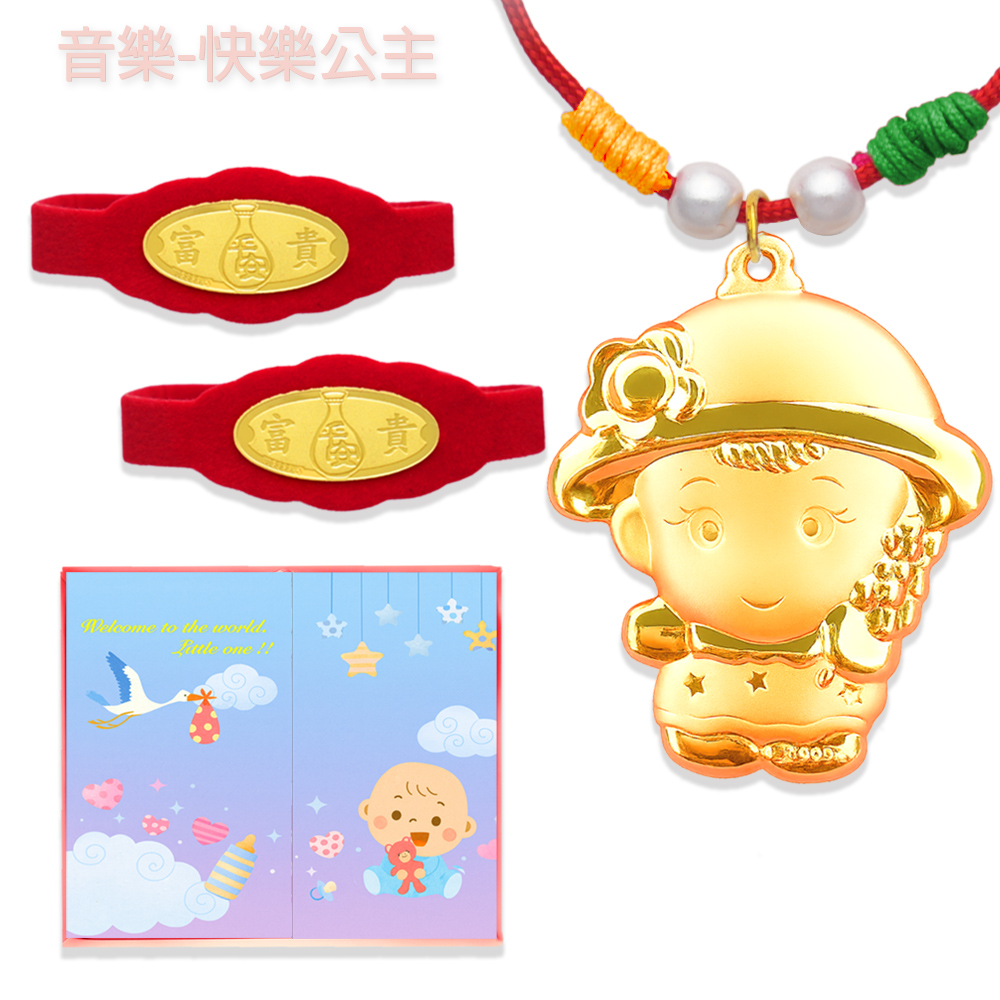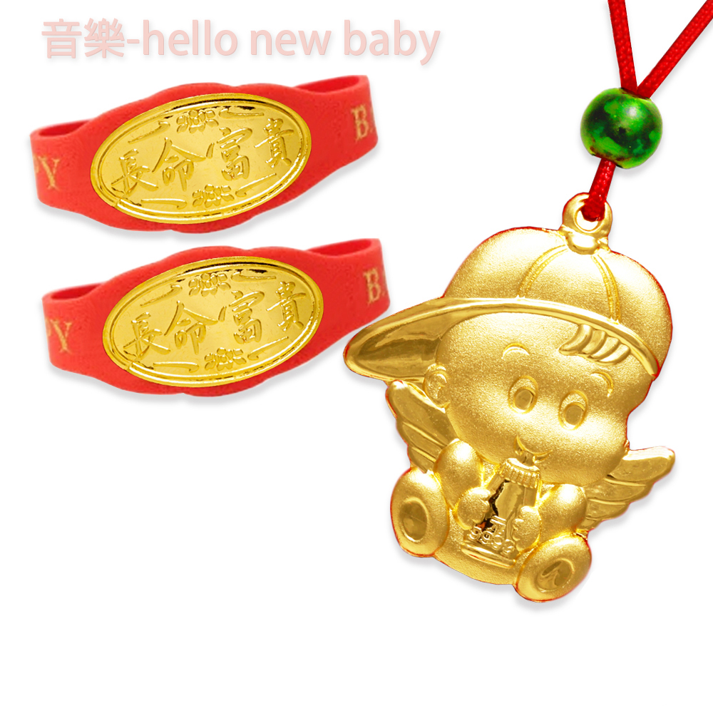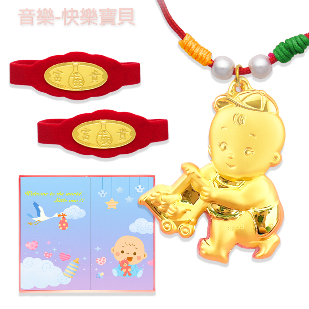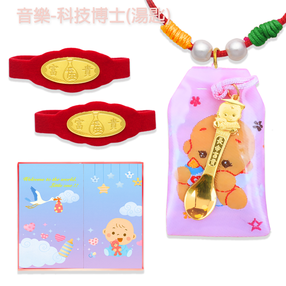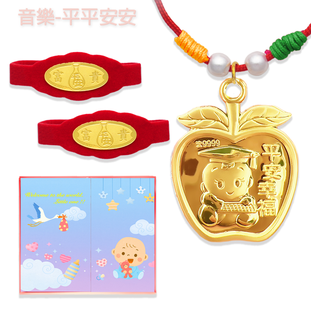名稱:彌月黃金禮盒 兒童套組多選 約重0.1錢 (999純金 滿月 御守 音樂禮盒 水晶)