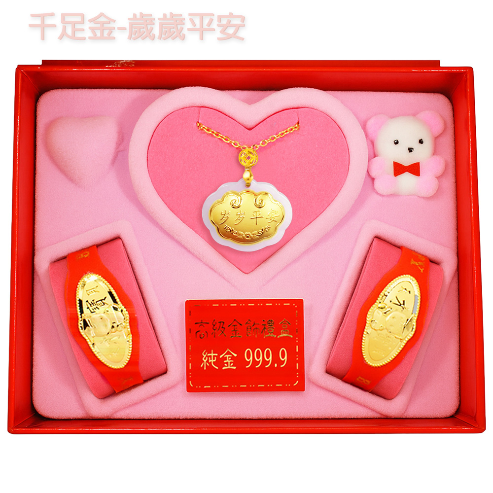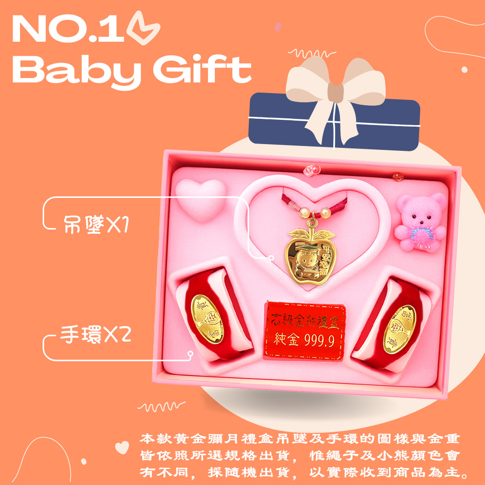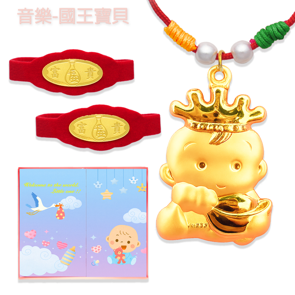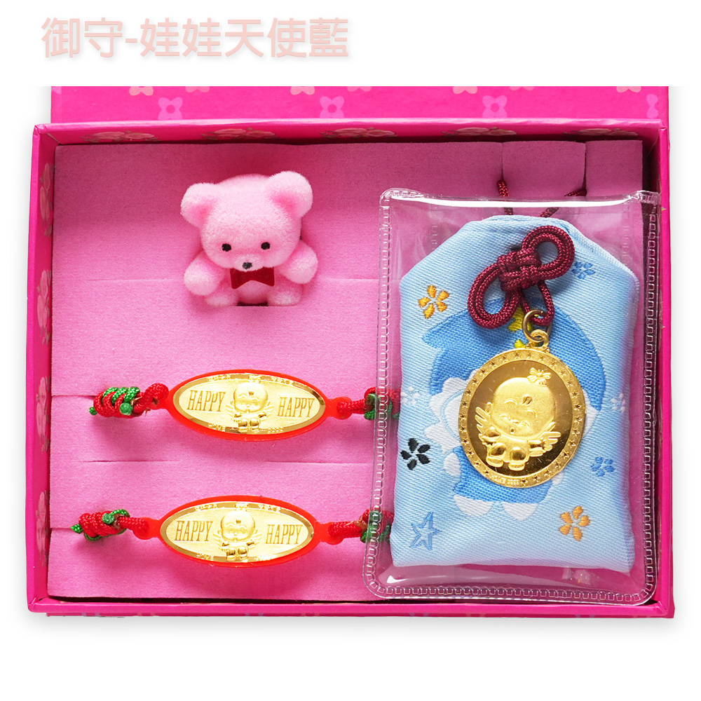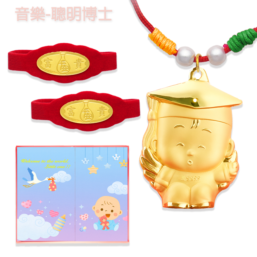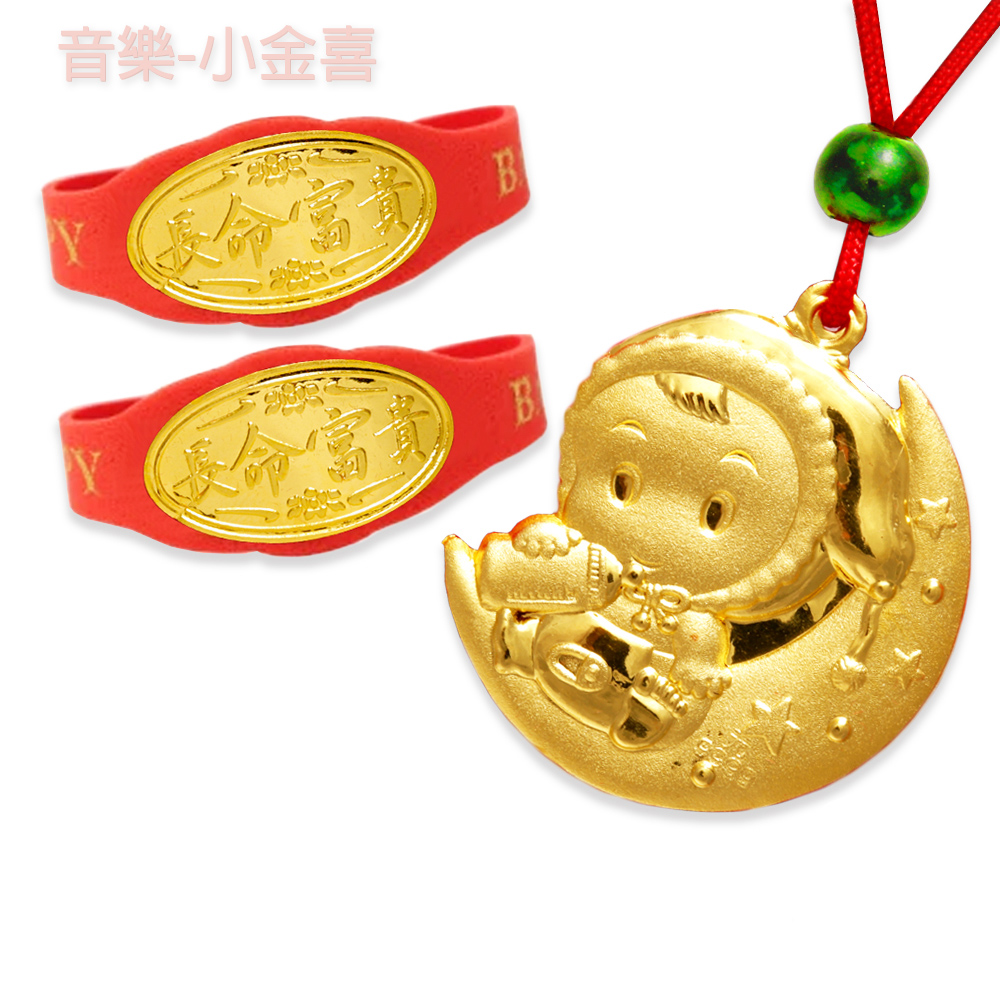 名稱:彌月黃金禮盒 兒童套組多選 約重0.1錢 (999純金 滿月 御守 音樂禮盒 水晶)