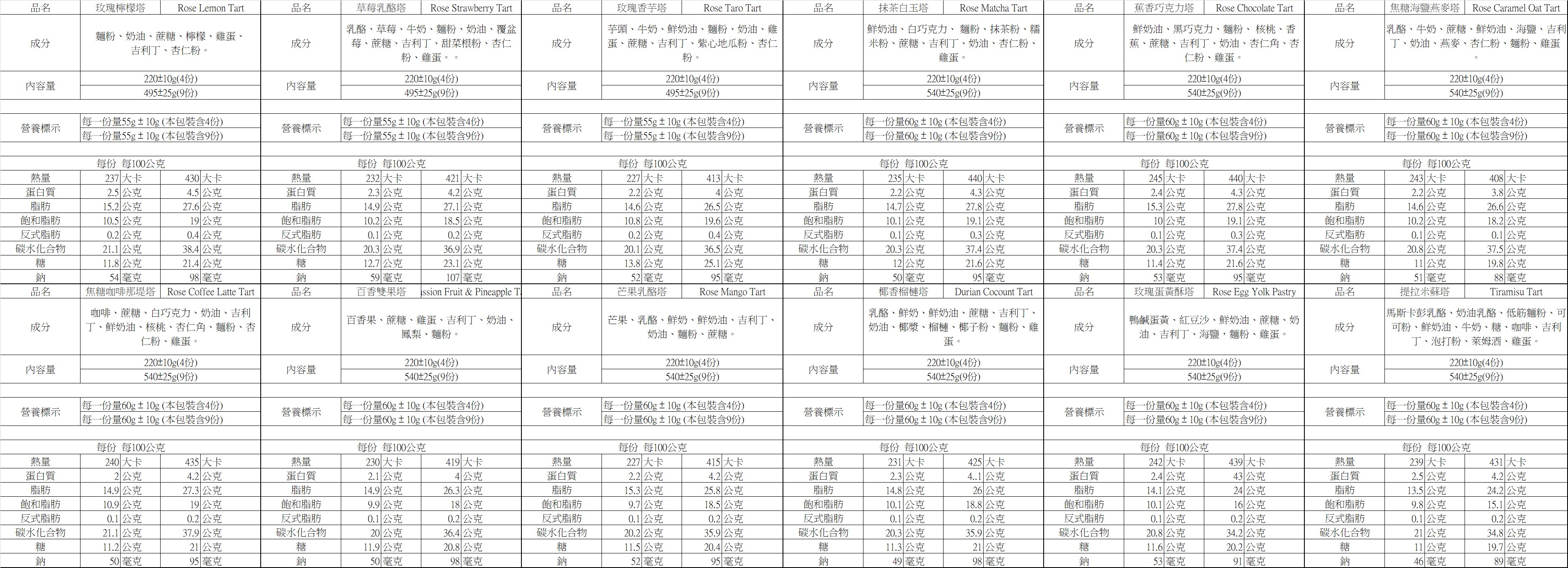 重量:檸檬&草莓&香芋每顆約55g ± 10g, 其餘口味每顆60g ± 10g玫瑰塔直徑約6.5cm2入禮盒約為15*8*5公分4入禮盒約為15*15*5公分