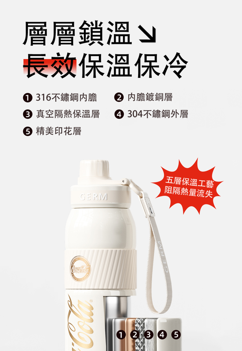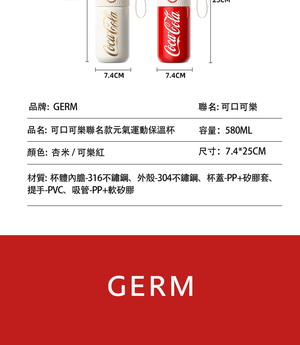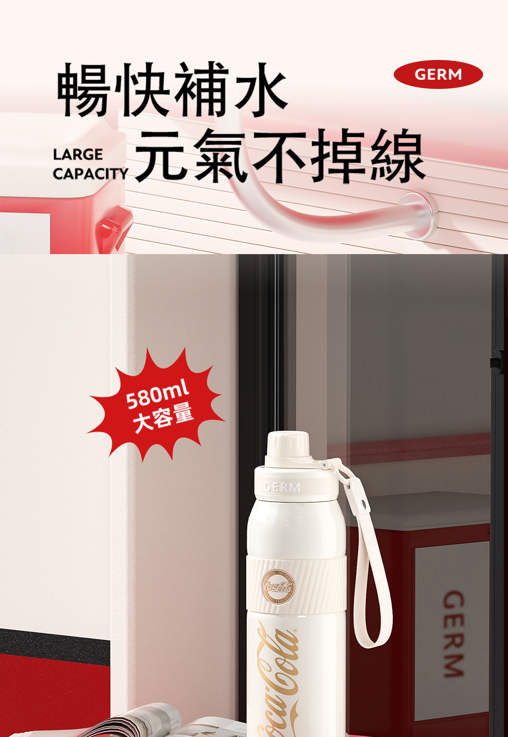 名稱:【GERM格米】可口可樂聯名款元氣運動保溫杯580ml-杏米(隨行杯/保溫瓶/保冰杯/水壺)
