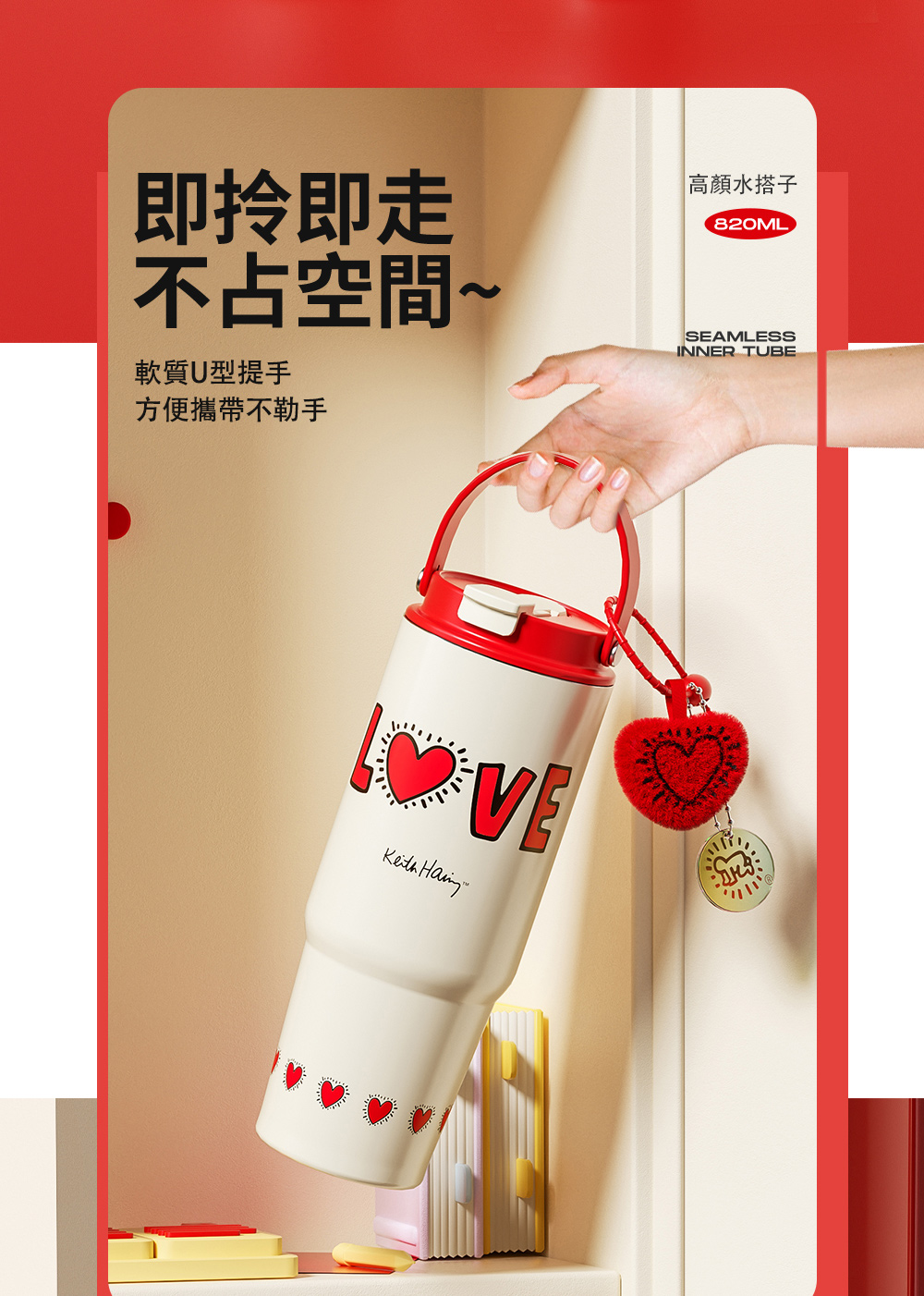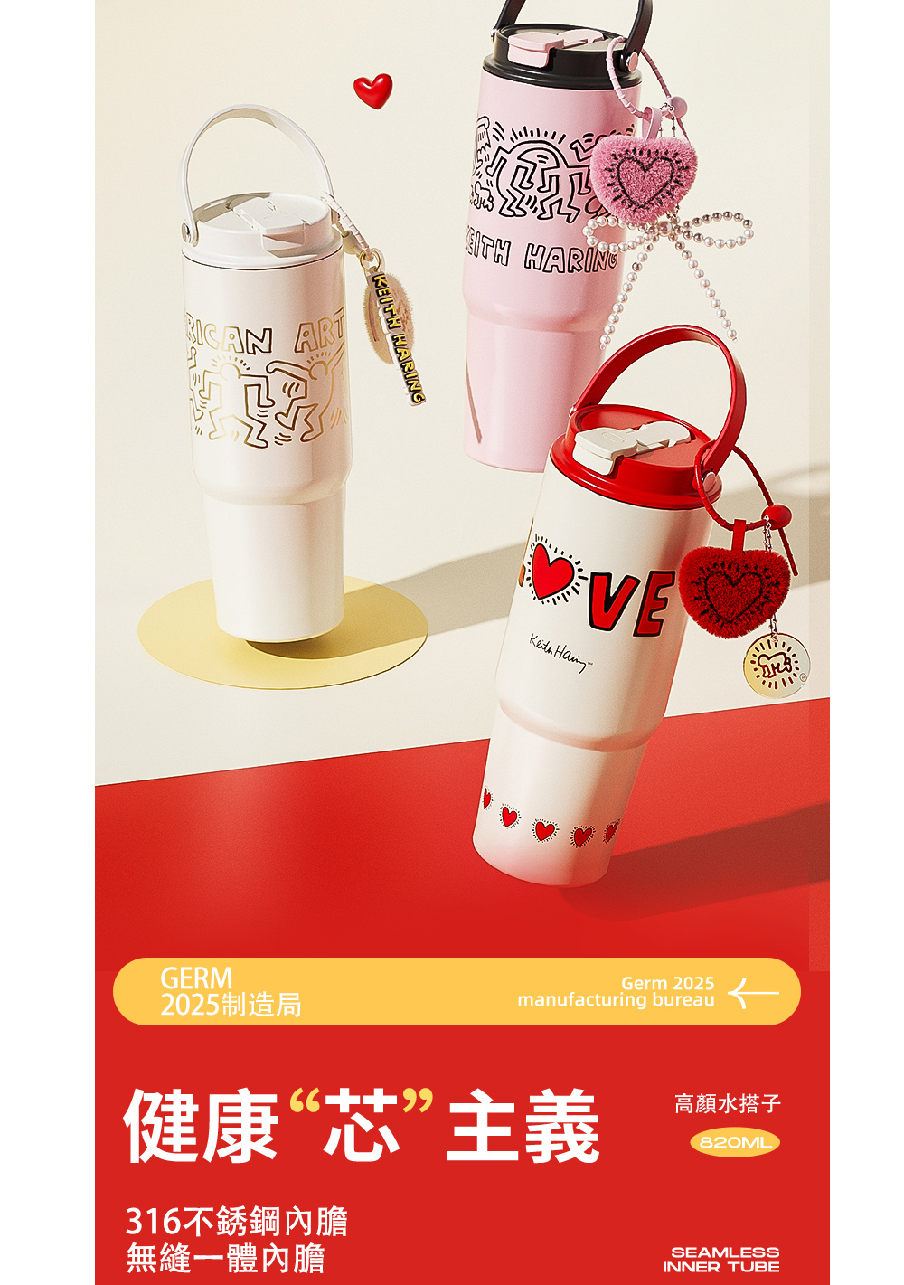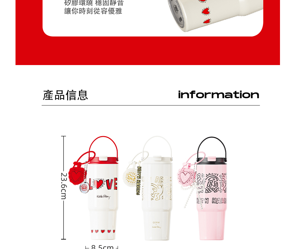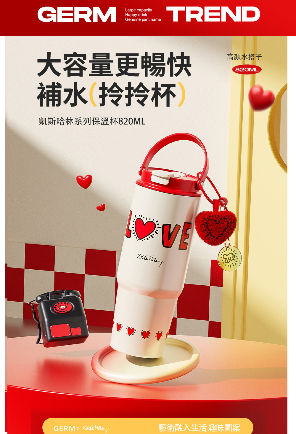 名稱:【GERM格米】凱斯哈林聯名款手提塔塔杯820ml-發光的愛(隨行杯/吸管杯/保溫杯/保冰杯/水壺)