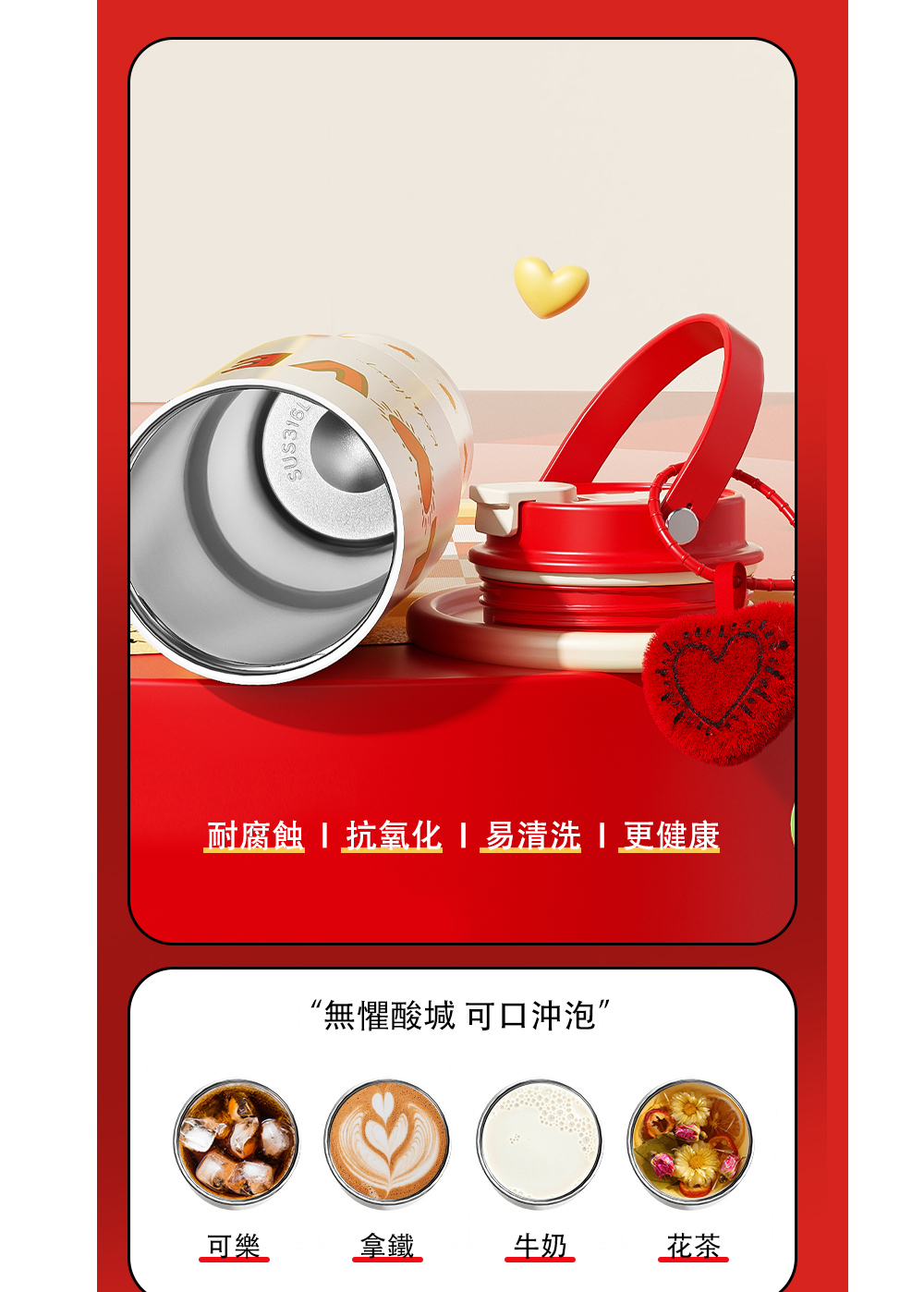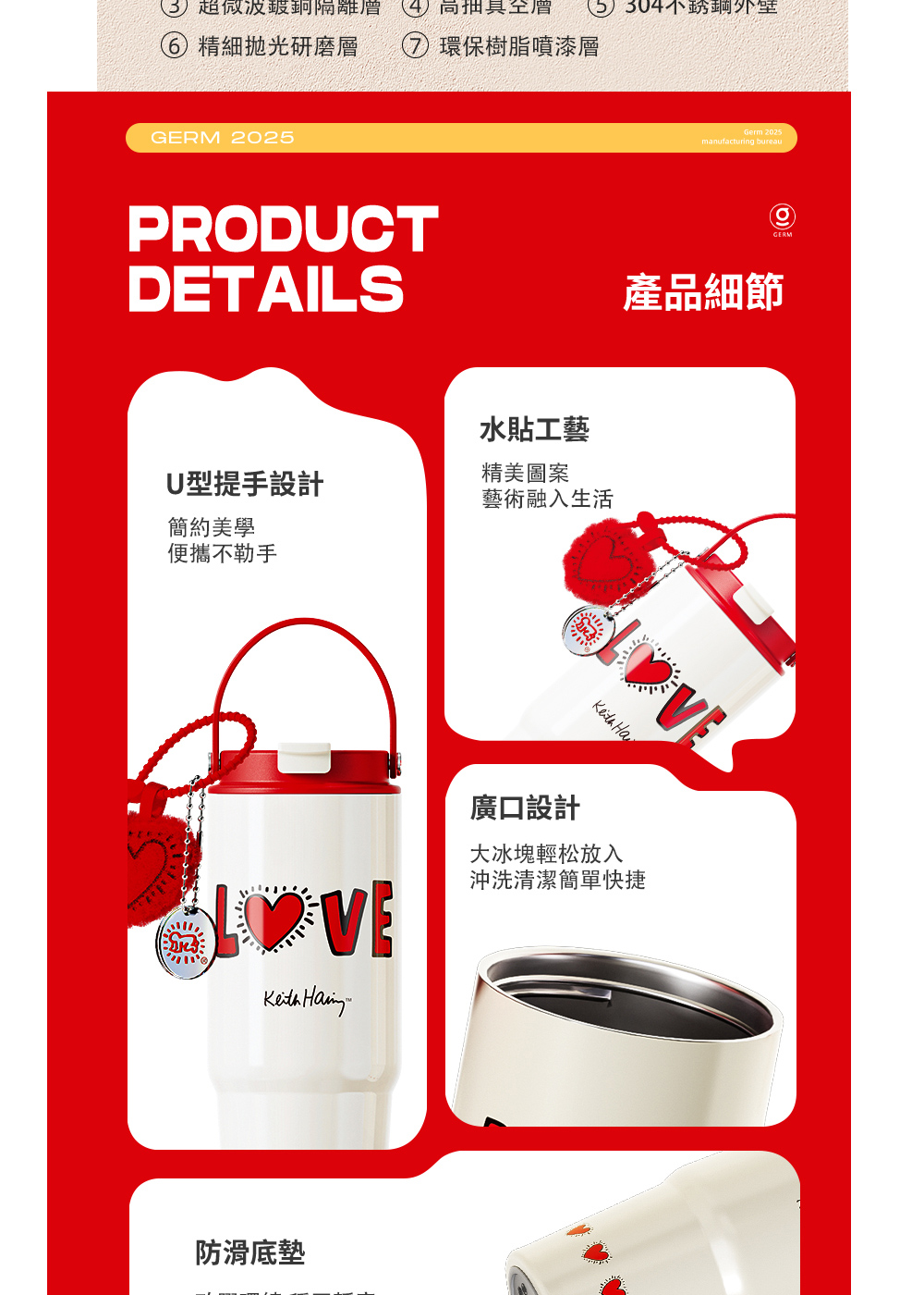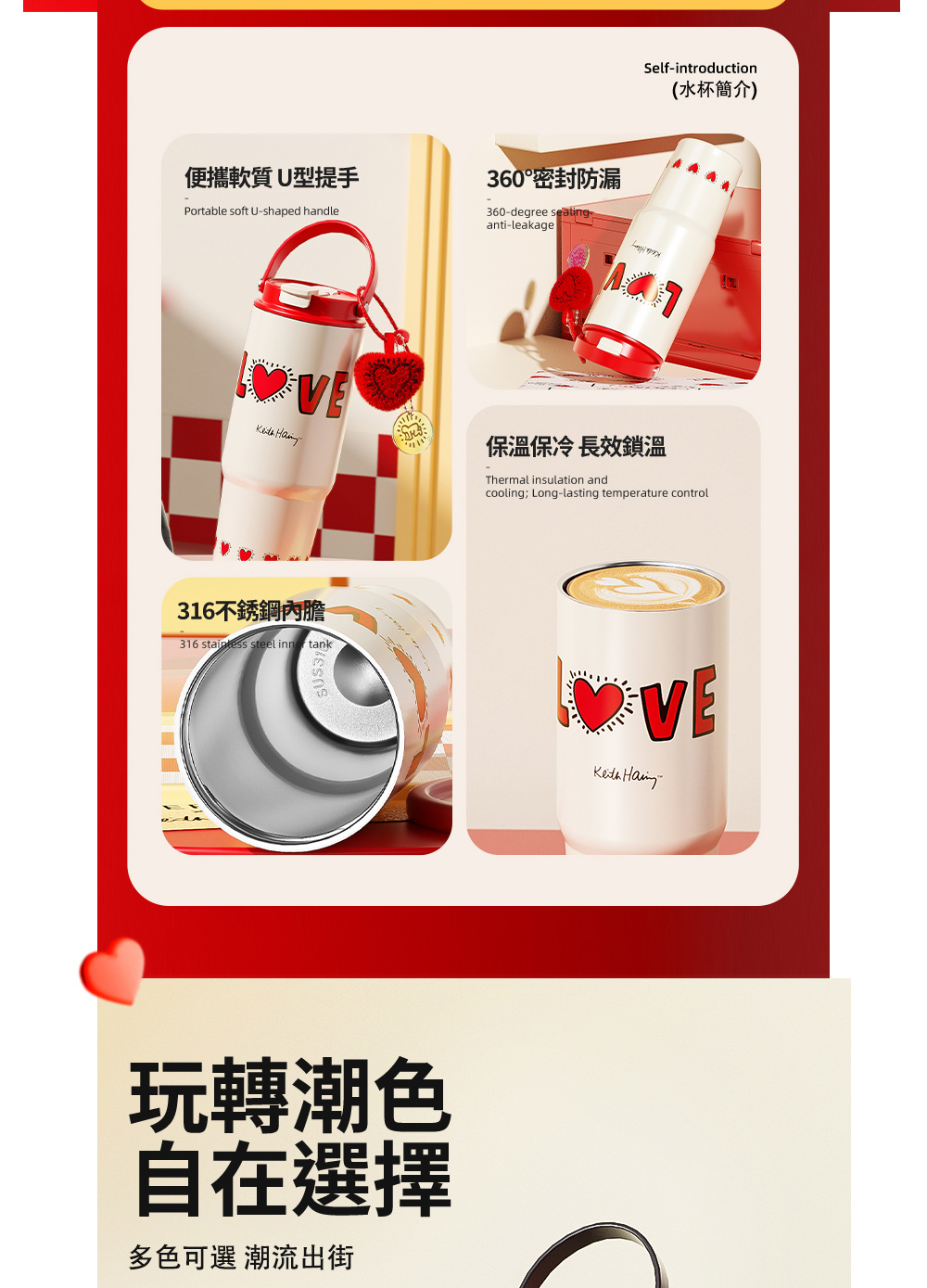 名稱:【GERM格米】凱斯哈林聯名款手提塔塔杯820ml-發光的愛(隨行杯/吸管杯/保溫杯/保冰杯/水壺)