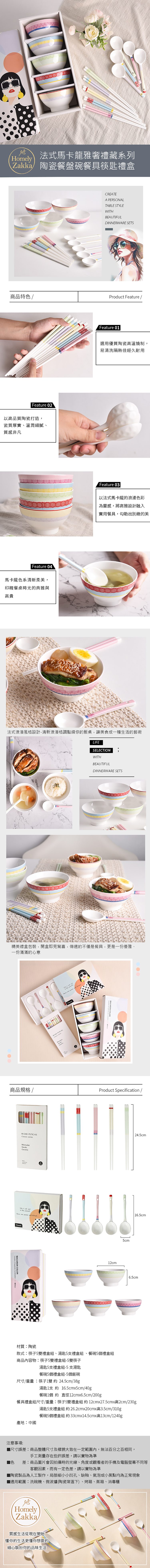 * 以法式馬卡龍的浪漫色彩為靈感,將高雅設計融入實用餐具,勾勒出別緻的美