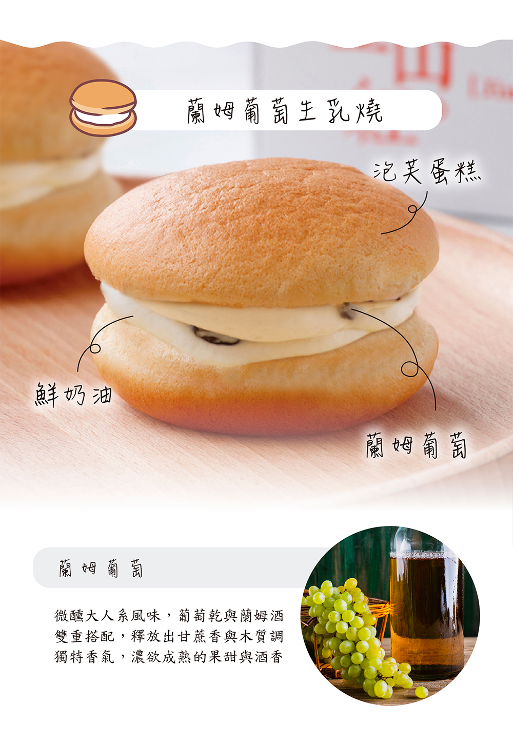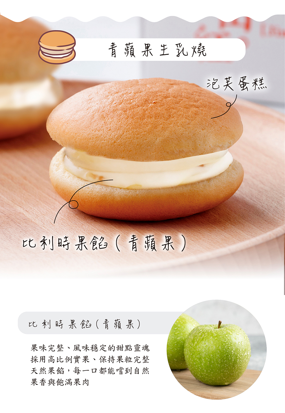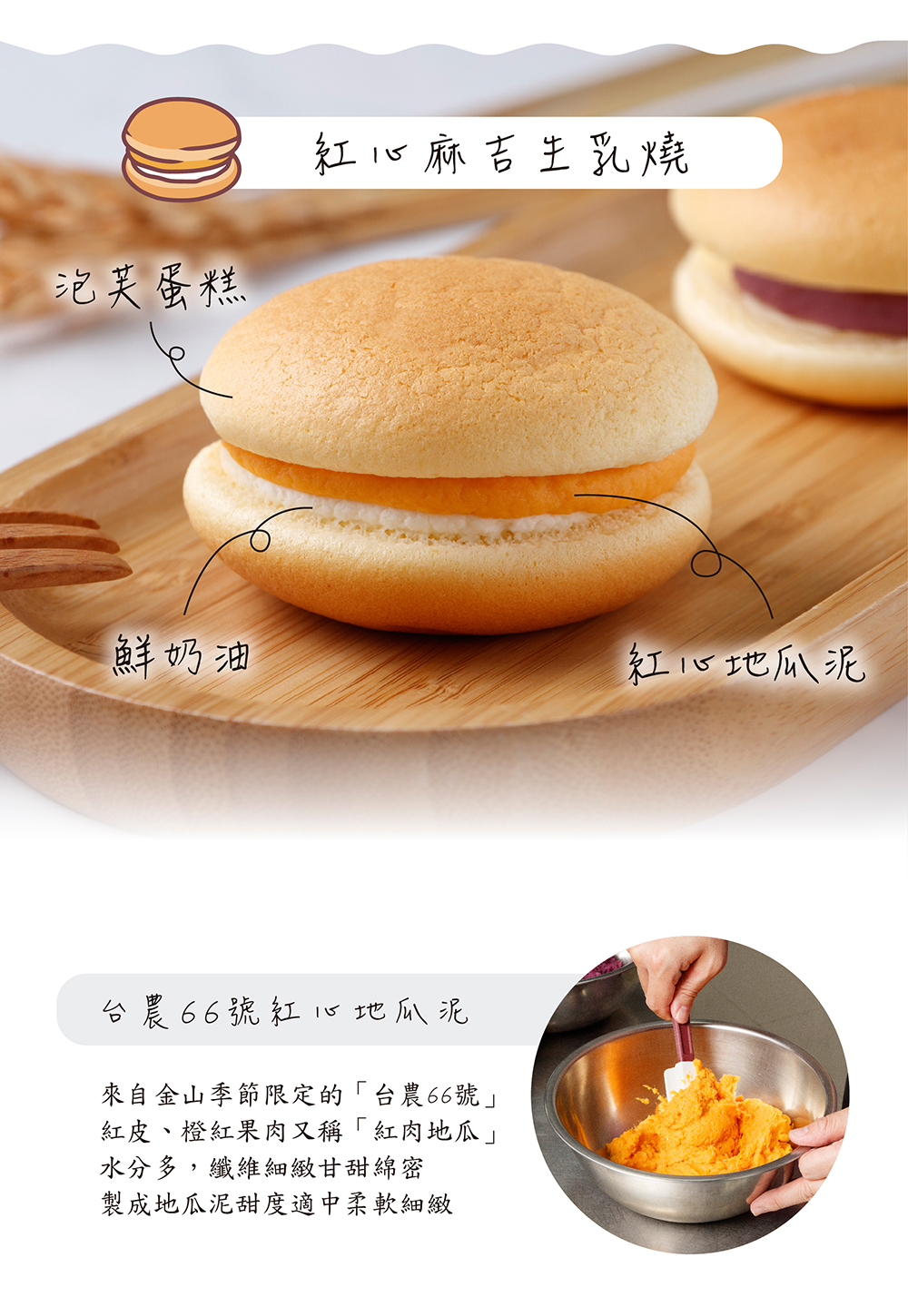 北海道生乳燒( 4入/盒) 口味:(一)原味布丁成分:布丁、雞蛋、鮮奶油、糖、牛奶、奶霜、麵粉、奶油、北海道鮮奶油乳酪、保濕纖維、塔塔粉過敏源:本產品含有奶類、雞蛋、小麥麩質成分(二)紅心麻吉成分:紅泥、雞蛋、鮮奶油、麻吉、牛奶、糖、麵粉、奶油、奶霜、北海道鮮奶油乳酪、格斯粉、保濕纖維、塔塔粉過敏源:本產品含有奶類、雞蛋、小麥麩質成分(三)紫心黑糖麻吉成分:雞蛋、紫泥、牛奶、鮮奶油、黑糖麻吉、糖、麵粉、奶油、奶霜、北海道鮮奶油乳酪、保濕纖維、格斯粉、塔塔粉過敏源:本產品含有奶類、雞蛋、小麥麩質成分(四)芋頭鹹蛋黃(葷食)成分:雞蛋、大甲芋頭、鮮奶油、糖、牛奶、鹹蛋黃、肉脯、奶油、麵粉、奶霜、北海道鮮奶油乳酪、保濕纖維、塔塔粉過敏源:本產品含有奶類、雞蛋、芋頭、小麥麩質成分(五)鳳梨鹹蛋黃(葷食)成分:雞蛋、加油冬瓜醬、鳳梨果餡、鮮奶油、鹹蛋黃、糖、牛奶、奶油、麵粉、奶霜、北海道鮮奶油乳酪、保濕纖維、塔塔粉過敏源:本產品含有奶類、雞蛋、小麥麩質成分(六)青蘋果成分:青蘋果果餡、雞蛋、奶霜、牛奶、糖、奶油、麵粉、鮮奶油、安佳乳酪、格斯粉、北海道鮮奶油乳酪、保濕纖維、塔塔粉過敏源:本產品含有奶類、雞蛋、小麥麩質成分(七)巧克力草莓成分:牛奶、雞蛋、草莓果餡、鮮奶油、奶霜、巧克力、糖、格斯粉、麵粉、奶油、北海道鮮奶油乳酪、保濕纖維、塔塔粉過敏源:本產品含有奶類、雞蛋、小麥麩質成分(八)蘭姆葡萄成分:蘭姆葡萄、雞蛋、奶霜、牛奶、糖、鮮奶油、奶油、麵粉、北海道鮮奶油乳酪、格斯粉、保濕纖維、塔塔粉過敏源:本產品含有奶類、雞蛋、小麥麩質成分