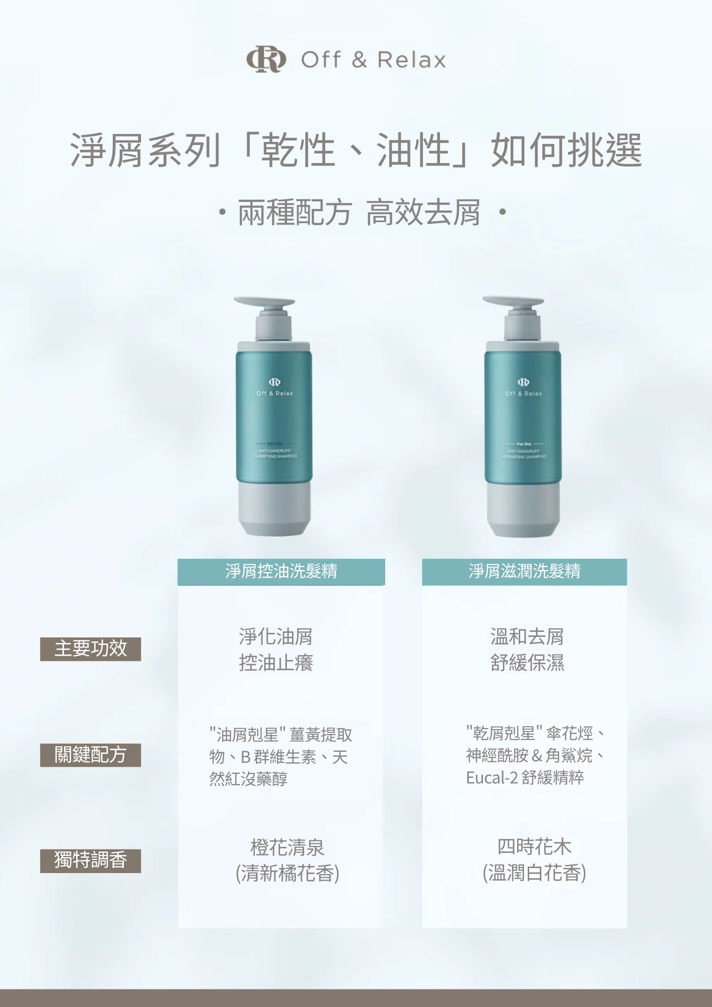 Off&Relax 抗屑洗髮精 針對乾/油性頭皮,兩種版本,量身打造