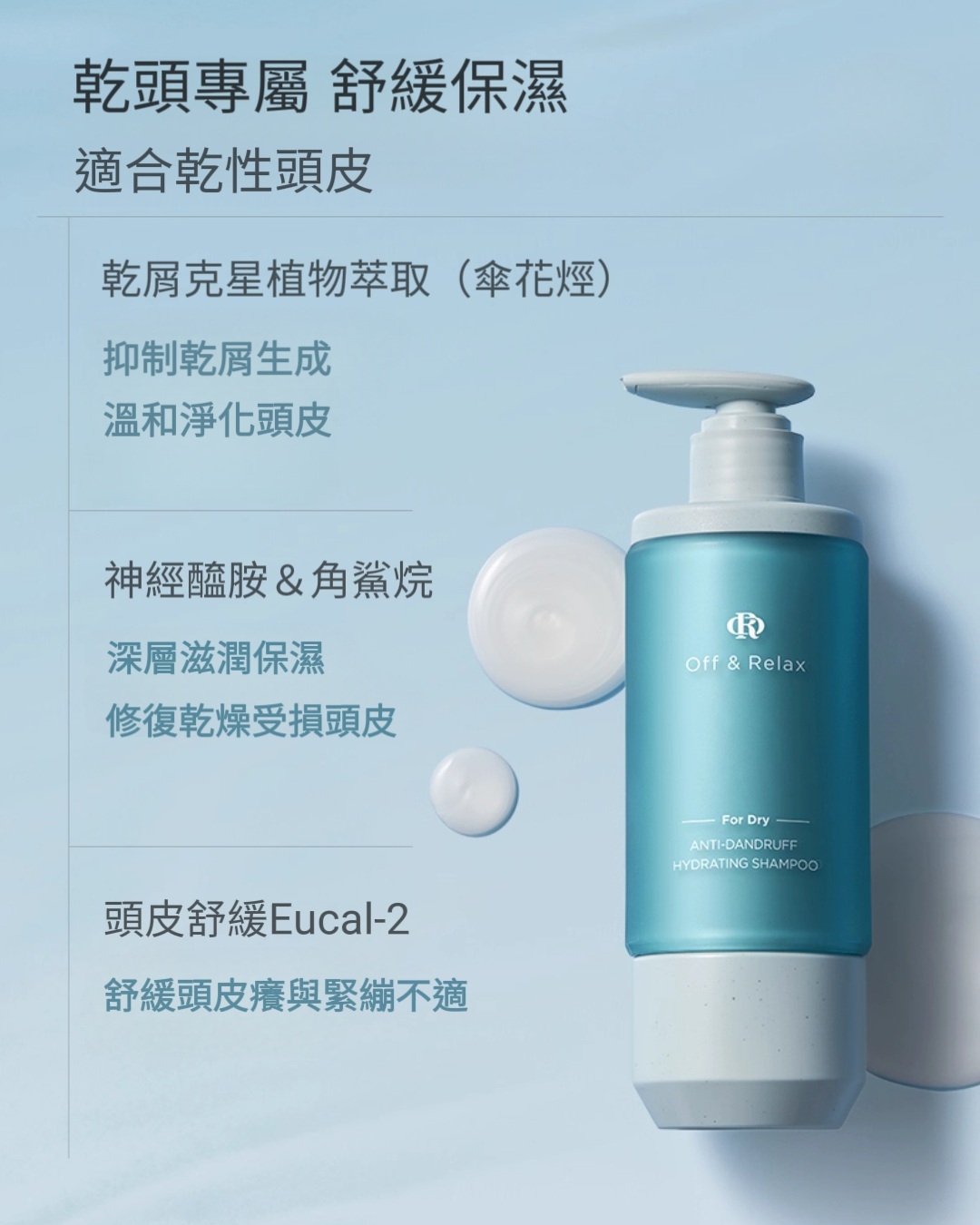 Off&Relax 抗屑洗髮精 針對乾/油性頭皮,兩種版本,量身打造