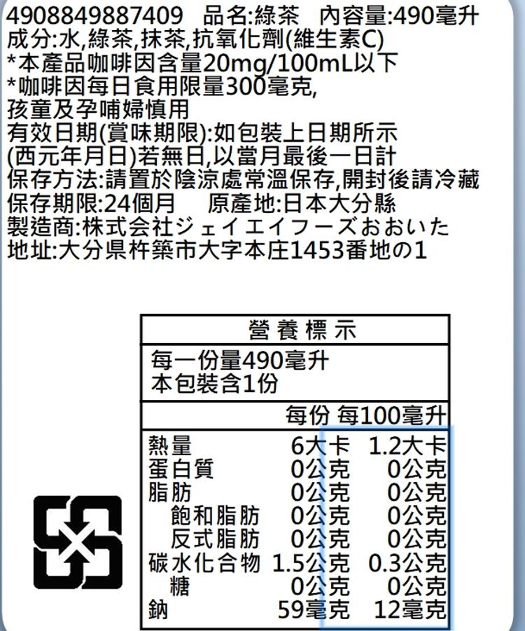 規格:490ml/瓶保存期限:24個月,有效期限依外包狀標示產地:日本大分縣