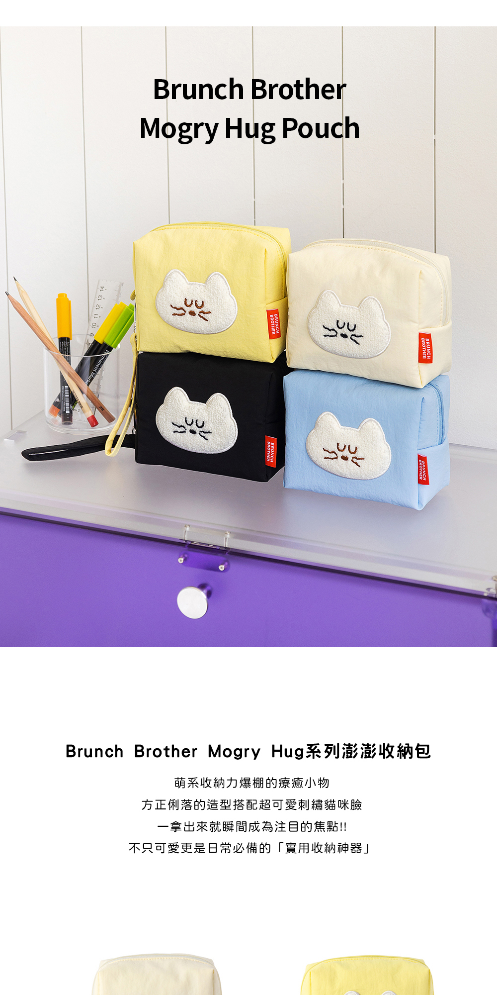 Brunch Brother 推出的「Mogry Hug」來啦!方正俐落的造型搭配超可愛刺繡貓咪臉,一拿出來就瞬間成為注目的焦點。不只可愛,更是日常必備的 實用收納神器 👜