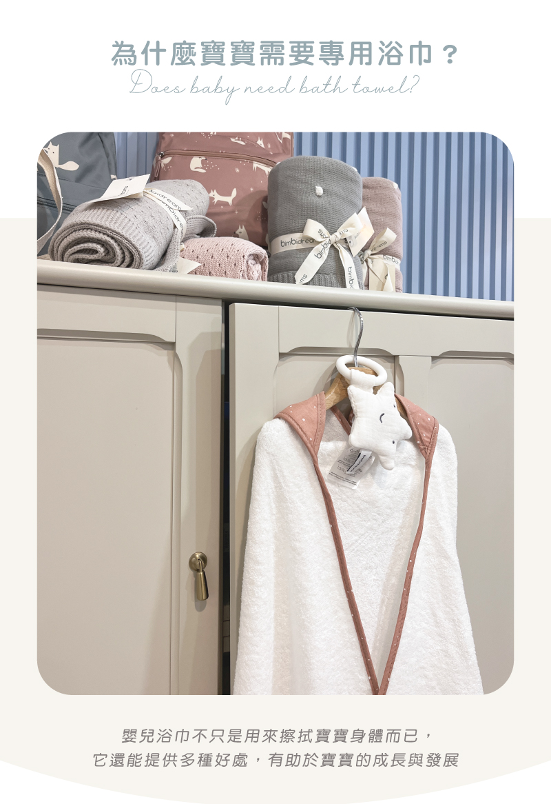 2.75x75公分的尺寸適中,可以讓寶寶在洗完澡之後保持溫暖,不只富有功能性,