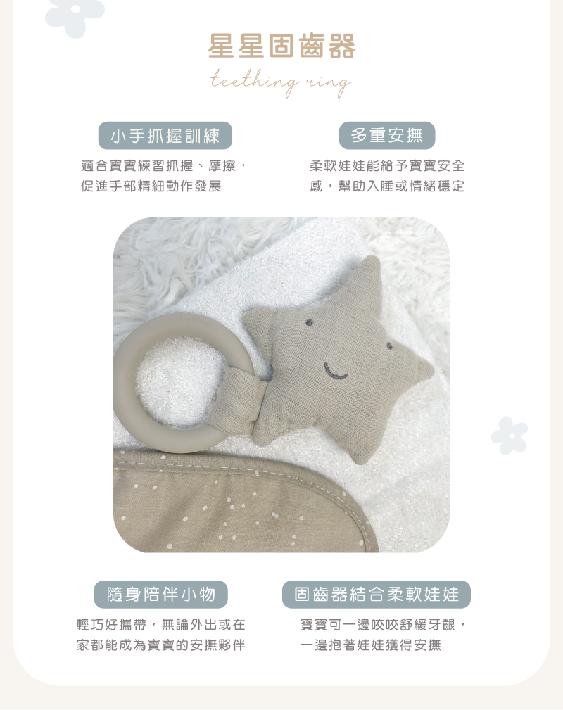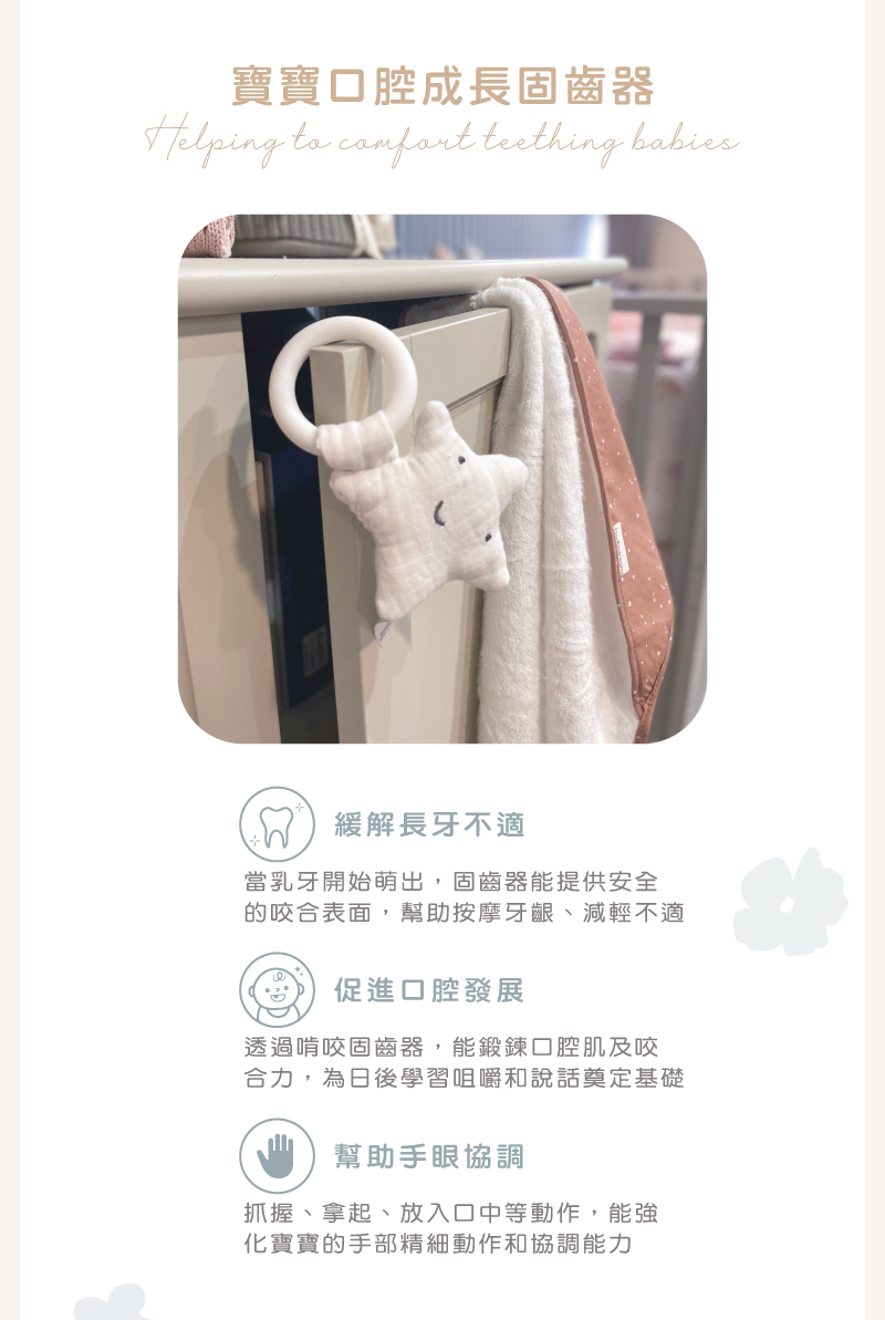 3.禮盒內附的星星固齒器,不只可愛還能緩解寶寶長牙期間的不適,是兼具實用性與設計感的每日必備單品。
