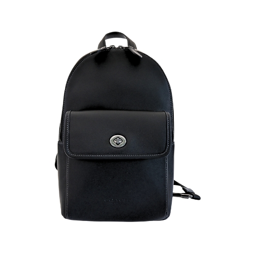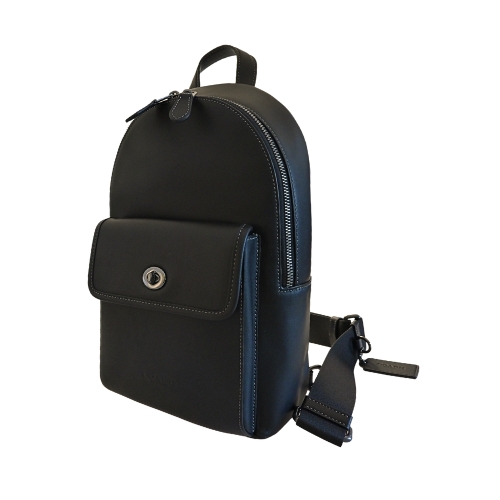 [平輸版] 【COACH】黑色素面皮革前口袋大款單肩胸背斜後背男包 真品平輸 | NearMe | 線上送禮平台『獨家支援 收禮者改選禮物』