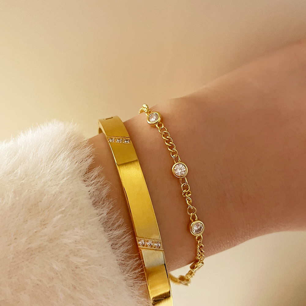 ・顏色:金色・材質:鈦鋼合金鍍金/人工亮鑽・功能:手鍊/禮品・尺寸:約17-18cm