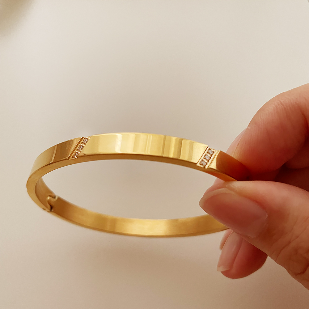・名稱:Tracey 簡約斜紋亮鑽水鑽金色女手環手鐲
