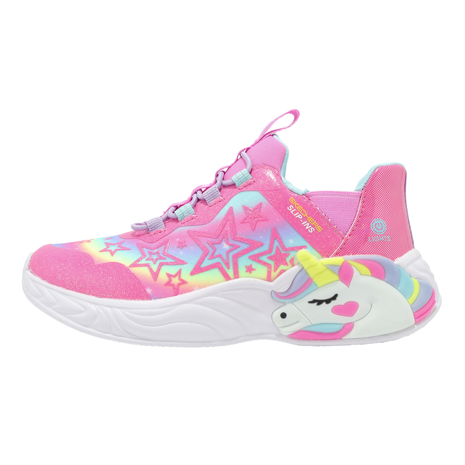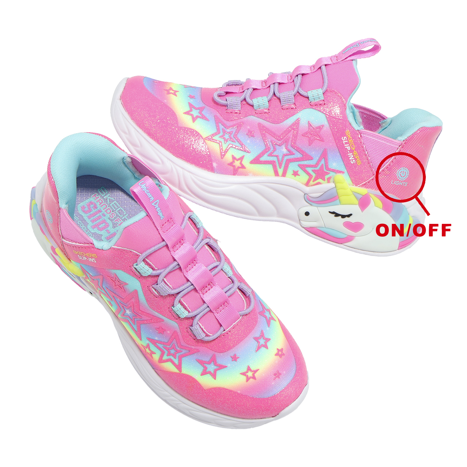 品牌: SKECHERS型號: 302296-LPKMT品名: S Lights-Unicorn Dream-Starry Lite版型: 版型正常*燈鞋開關位置詳見圖片說明。