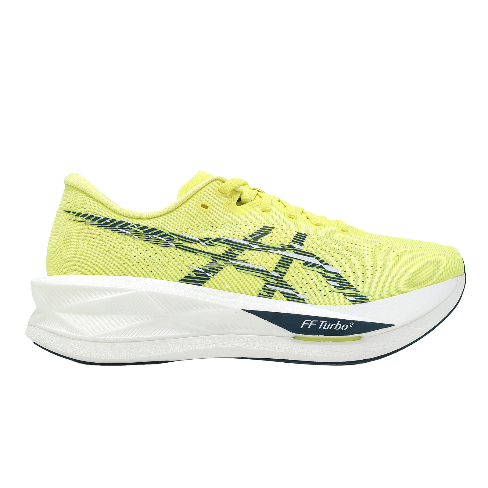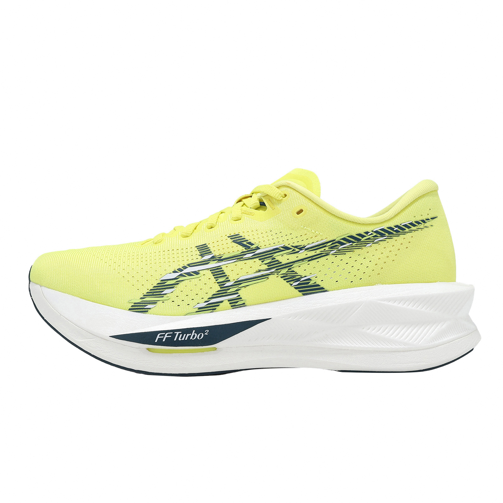 * 上層採用全新FF TURBO 彈性材質,提供優於FF TURBO+ 的回彈效果,打造極具彈力的活潑腳感。
