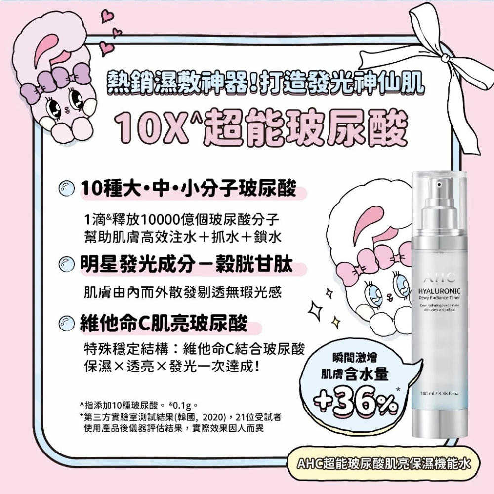 .超能玻尿酸+維他命C肌亮玻尿酸:特殊穩定結構,保濕與透亮發光一次達成