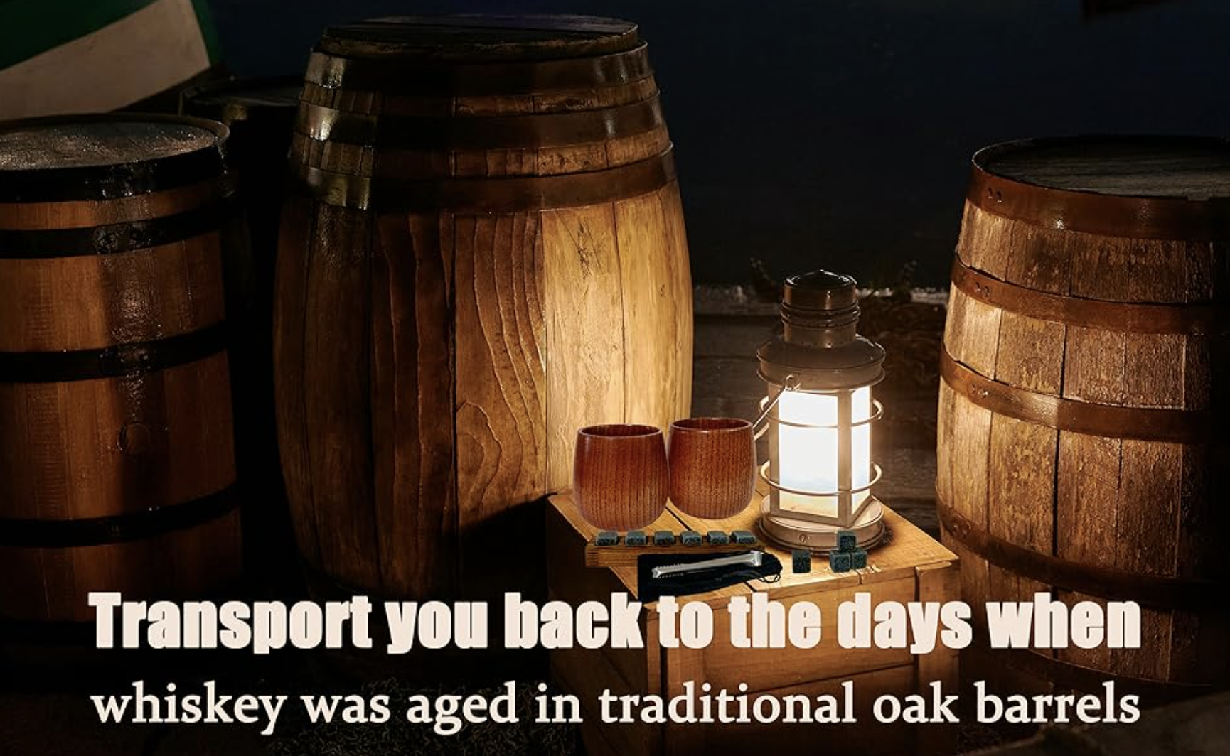 ☑ 重現橡木桶熟成風味手工打造的木質威士忌杯,以橡木桶為靈感設計,模擬微氧化作用,讓波本酒的香草、焦糖與煙燻風味更濃郁細緻。搭配不吸味的大理石冰石,完美保冰超過 60 分鐘,不稀釋、不走味。