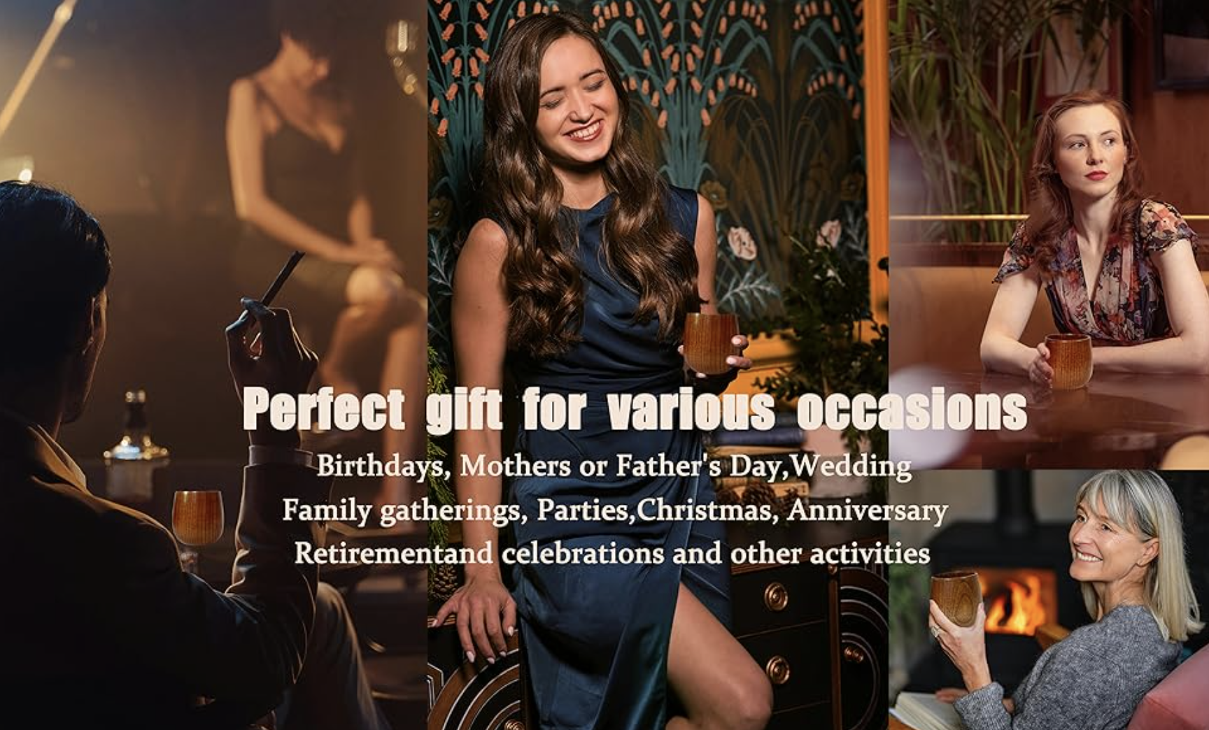 ☑ 耐用奢華,傳世經典告別易碎玻璃,這款木杯採用防碎硬木製成,搭配抗刮大理石冰石與防鏽不鏽鋼夾,可承受日常使用與手洗清潔,經久耐用。