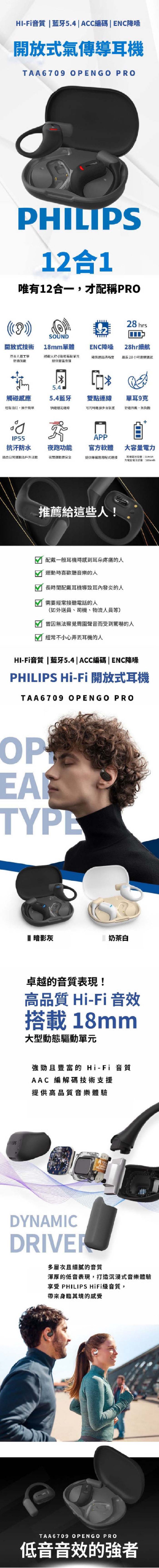 ✦PHILIPS 熱銷GO系列,開放式運動藍牙耳機✦唯有十二合一,才配稱PRO✦搭載18mm大型動態驅動單元,高品質Hi-Fi音效✦開方式耳掛設計,不阻塞耳朵✦符合人體工學的完美貼合,提供舒適配戴感✦內建高感度ENC麥克風,AI演算消廚環境噪音✦降漏音設計與清晰音效,提供沉浸式聆聽體驗✦多點連接支援,PC、手機等設備自由切換✦大容量電池,超長續航28小時接續播放✦5分鐘快速充電,即可使用1小時✦國際IP55防水防塵,適合各種天氣與環境✦採用高級矽膠材質的輕量耳機,單耳僅9g✦支援藍牙5.4版本,快速穩定且低延遲✦我們關心地球,環保包裝設計✦高雄二聖門市體驗|提供試聽展示機,歡迎來店體驗音質✦BSMI許可字號:R33037✦NCC許可字號:CCAH25LP1000T0