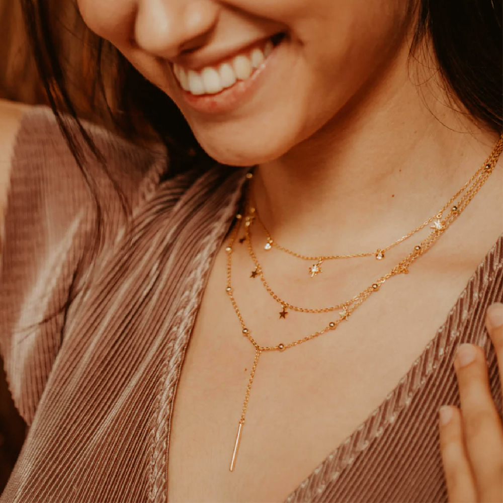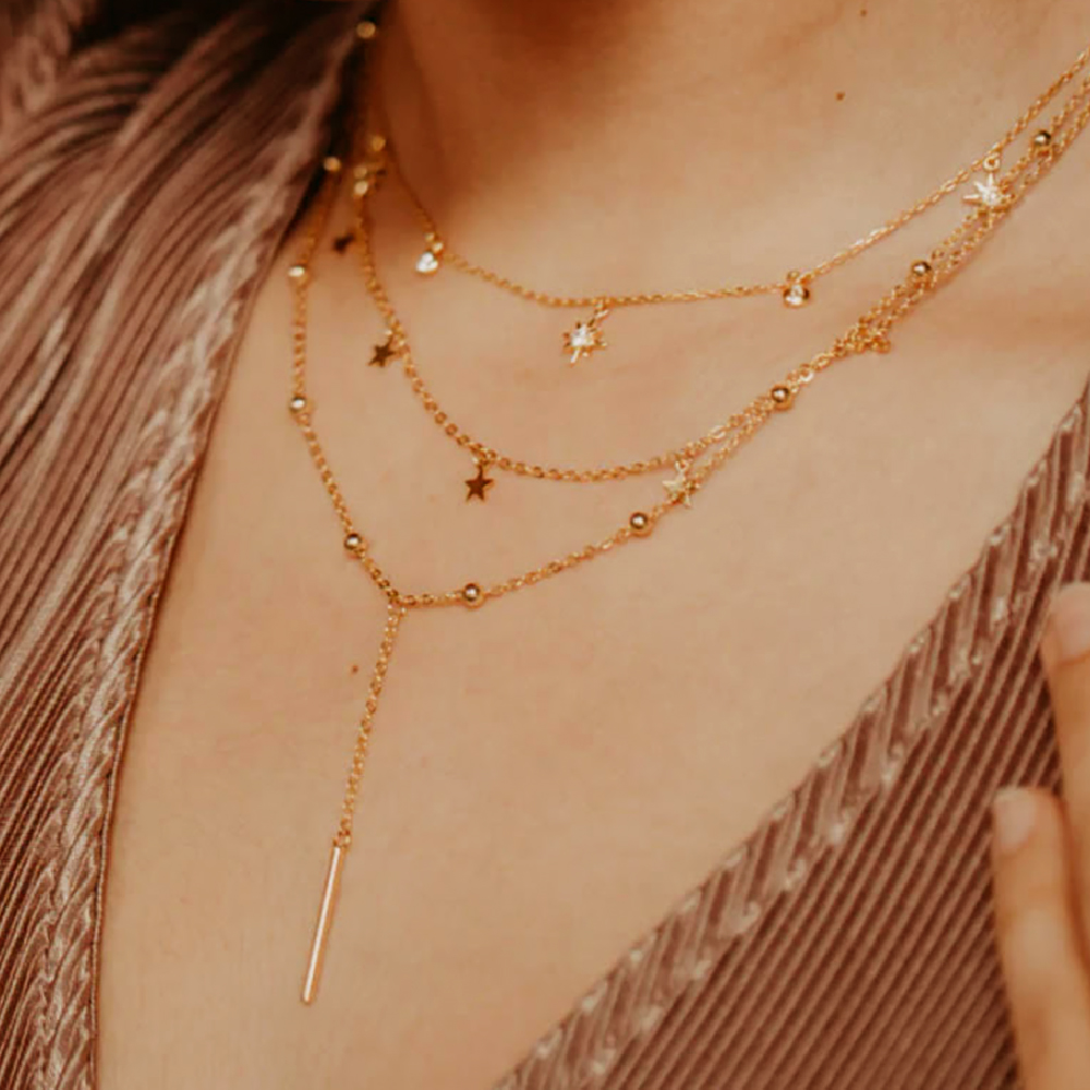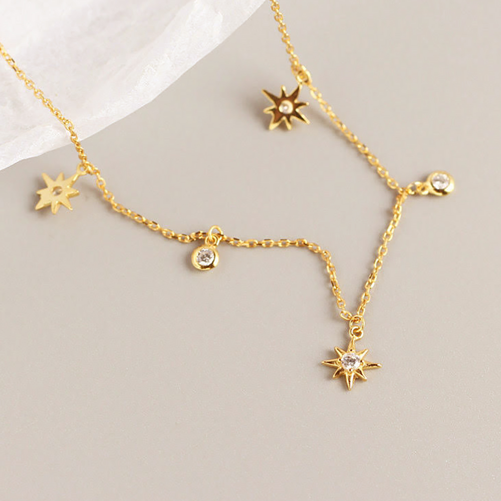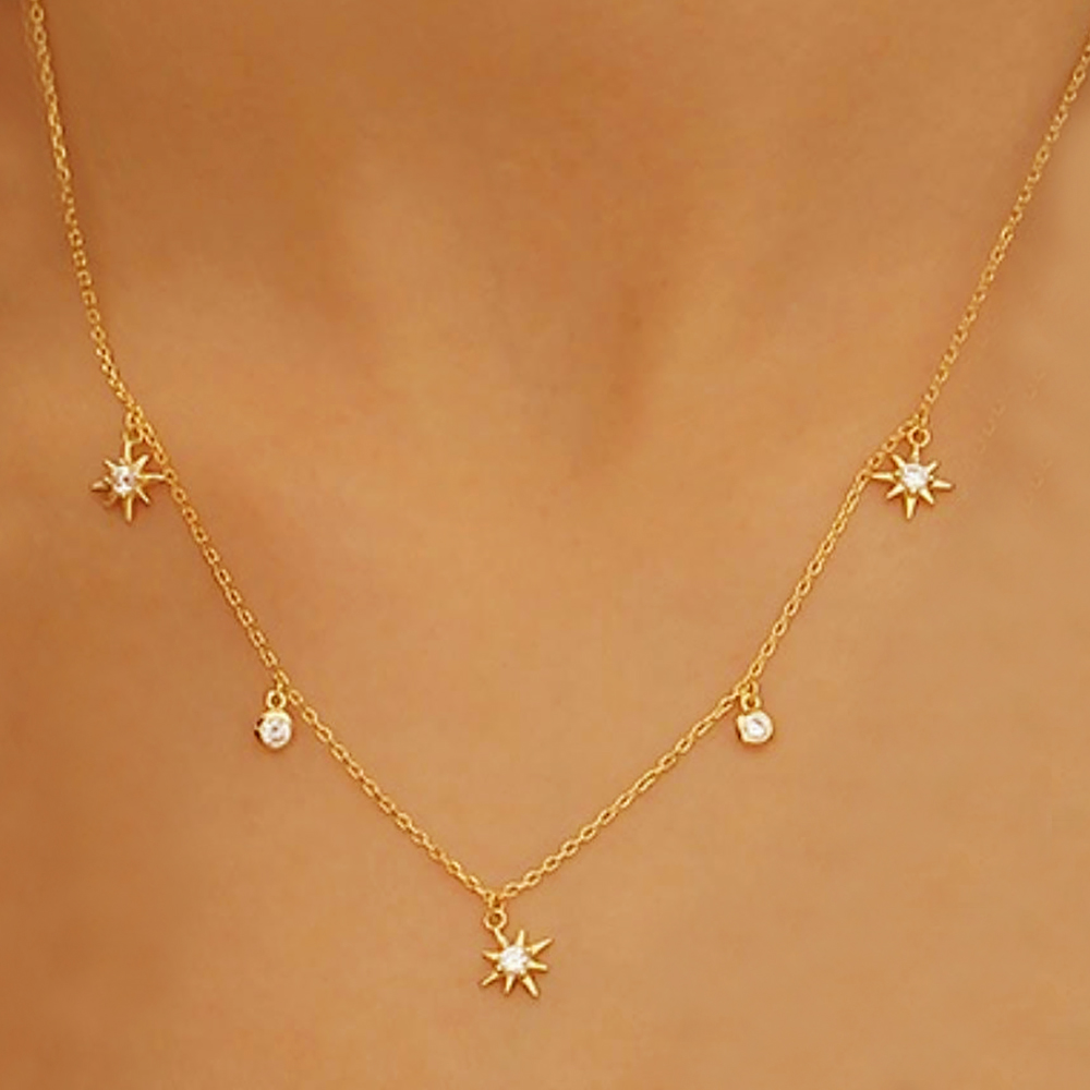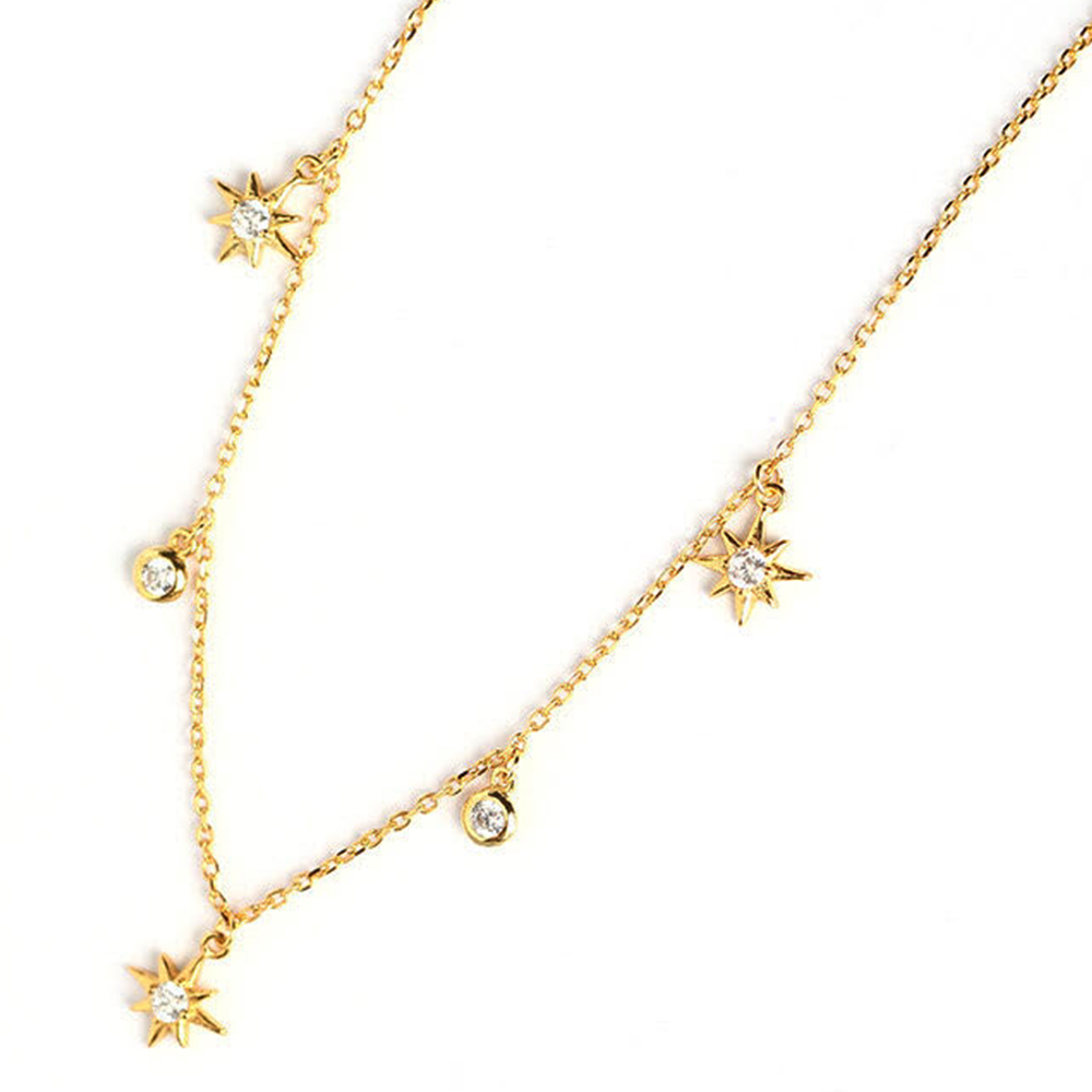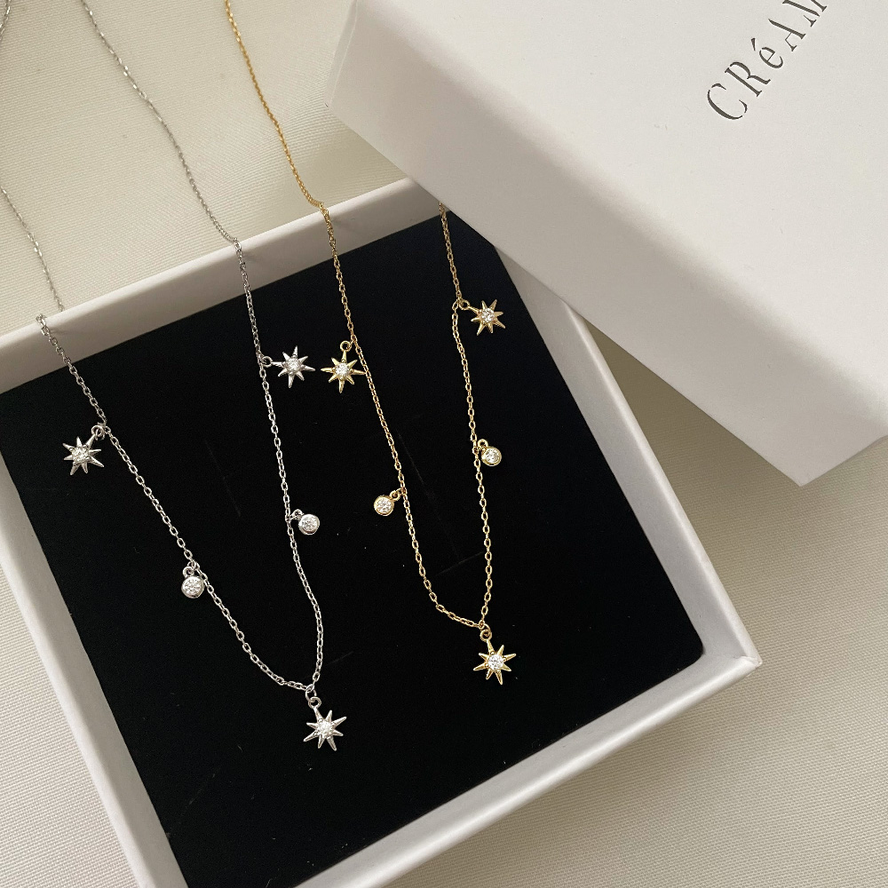 ・名稱:Edith純銀鍍14K金色星星八芒星亮鑽項鍊金銀色項鏈