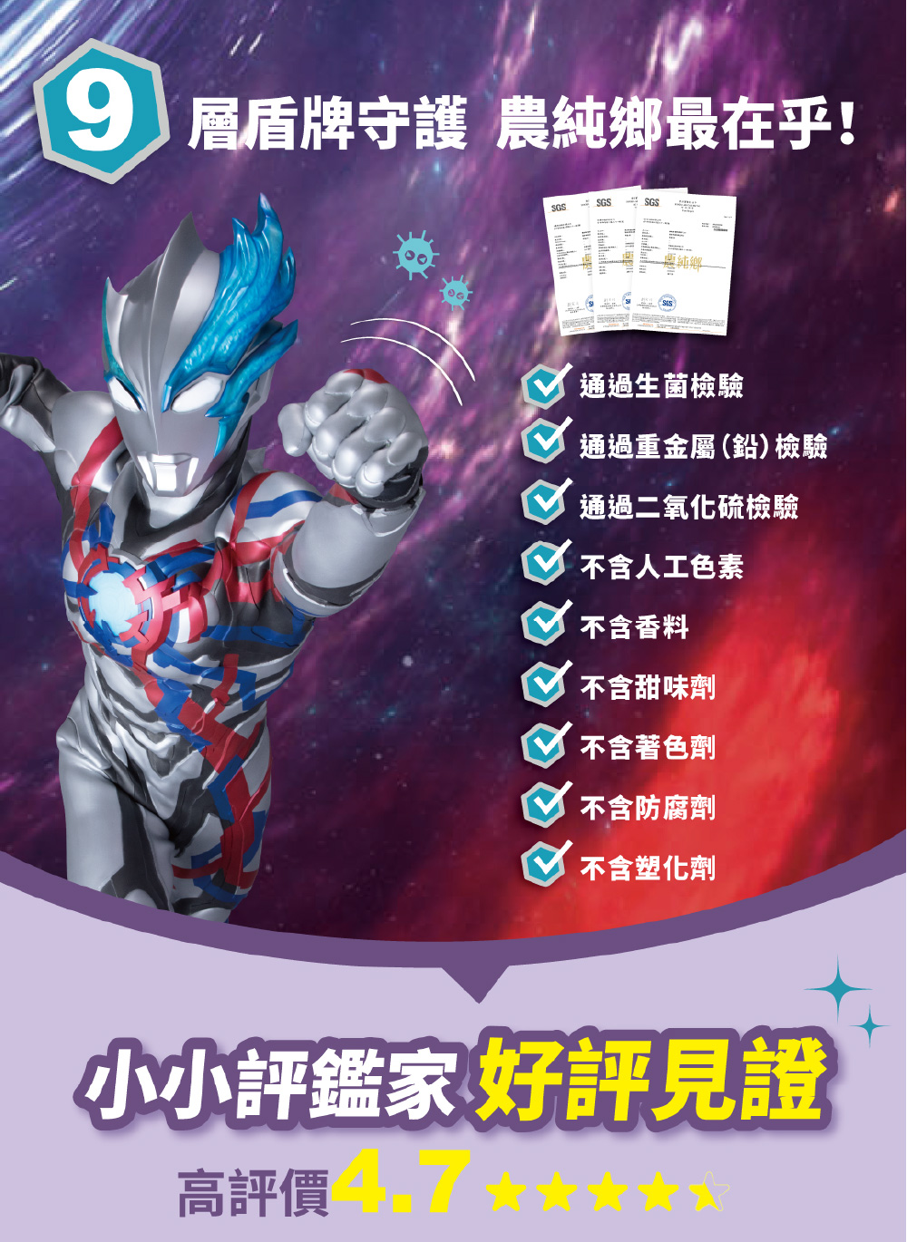 |農純鄉獨家配方:無人工色素、無甜味劑、無香料