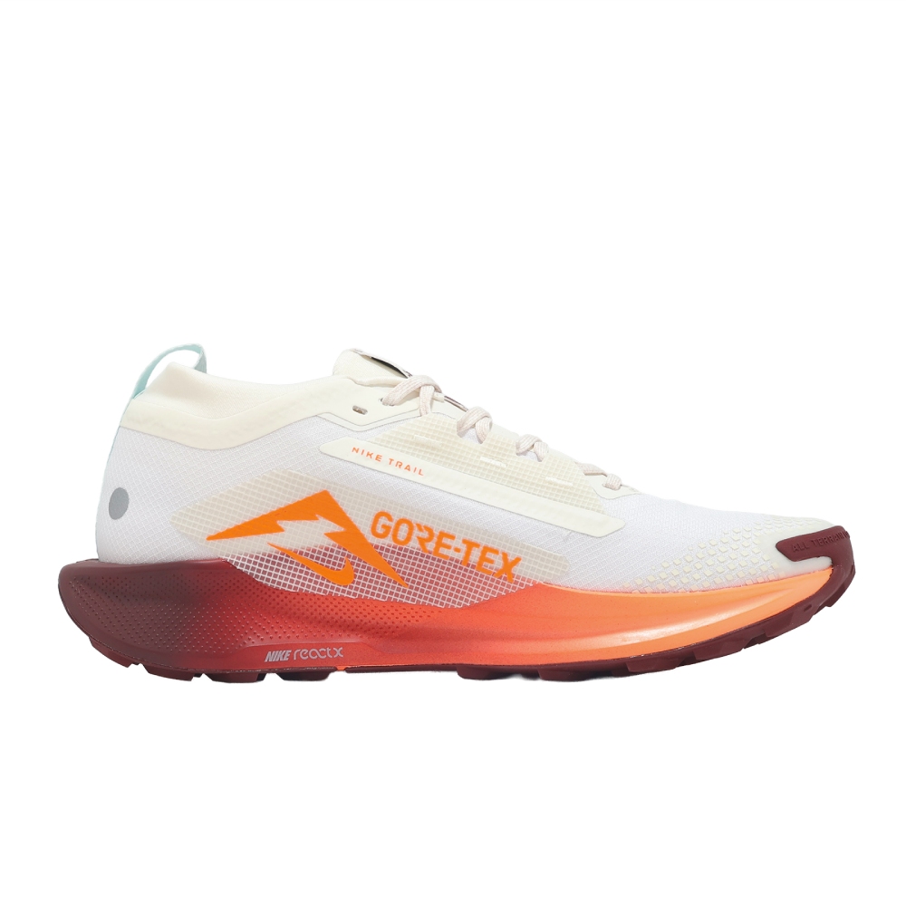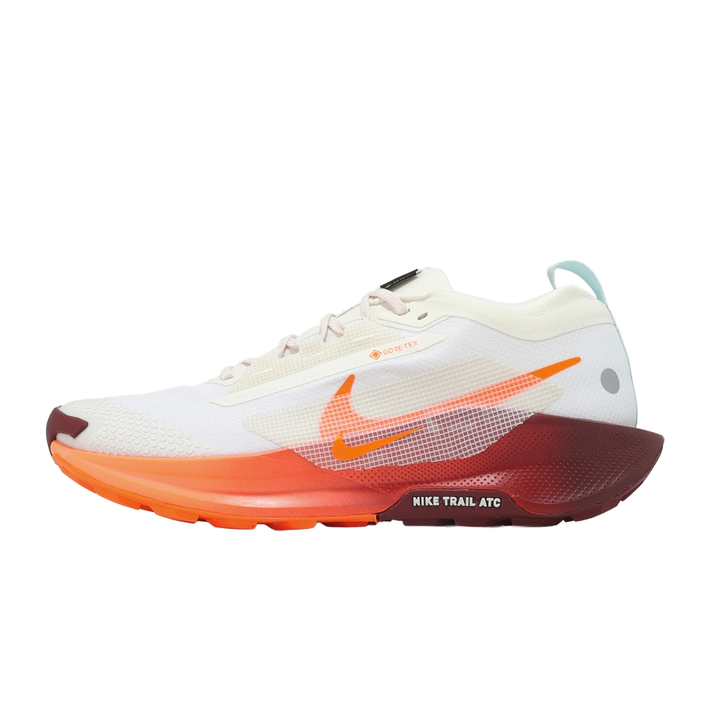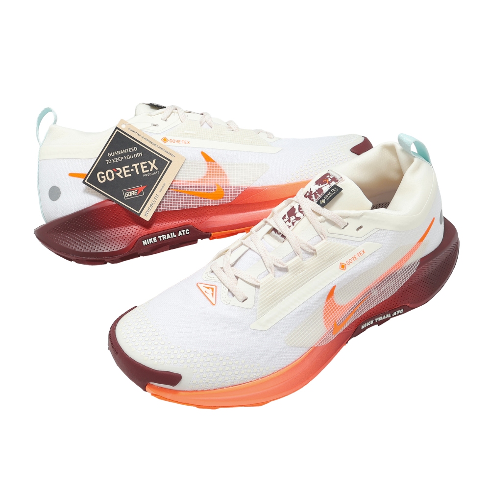 品牌: NIKE型號: FQ0908-104品名: Pegasus Trail 5 GTX版型: 腳寬者建議大半號* 鞋面採用耐磨網布搭載 Gore-Tex 防水科技設計,提供戶外活動時乾爽舒適腳感,並提升耐用性。* 中底採用 Nike 當前最輕量化的 ReactX 泡棉科技中底,在觸地瞬間能有效減緩地面給予雙足的衝擊力。* 加強腳趾等易磨損區及加高鞋領設計有助減少碎石進入鞋內。* 大底凸出抓地紋路結合橡膠材質設計,為戶外活動提供強大的止滑抓地效果。* 鞋後跟添加反光材質設計,能在光源不足的環境下提升人員的被辨識度與安全性。