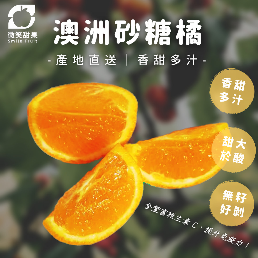 ✅ 小巧可愛:一口一顆,孩子最愛的零食水果。✅ 酸甜平衡:果汁香甜不膩,酸甜比例剛剛好,清爽解膩。✅ 薄皮好剝:果皮薄易剝,剝開瞬間果香四溢。✅ 完全無籽:無籽設計,吃起來更方便,不必擔心吐籽。✅ 品質嚴選:Smile水果挑選果肉細嫩、香甜多汁的優質砂糖橘,新鮮直送。