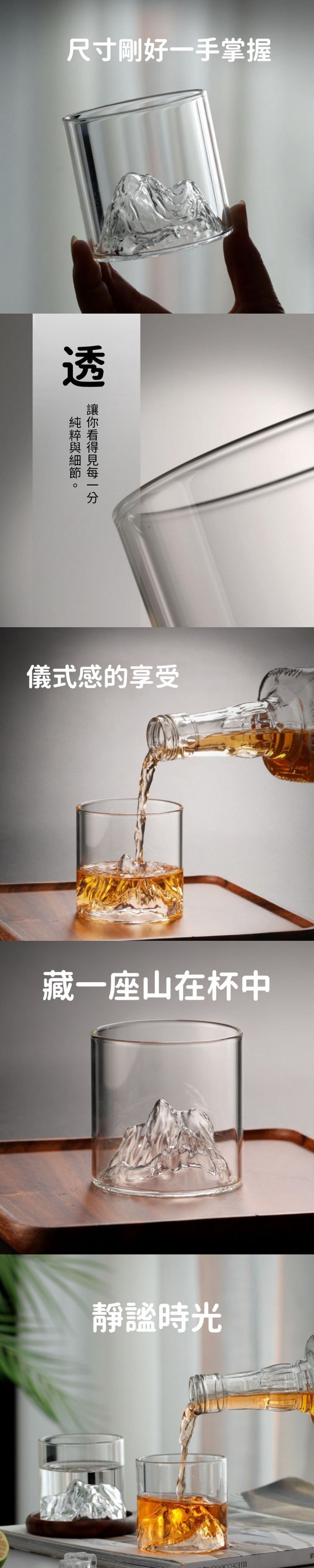 🥃 【觀山玻璃威士忌杯】藏一座山在杯中極具意境的設計,讓你在每一次舉杯時,都能欣賞杯底藏山的層次之美。
