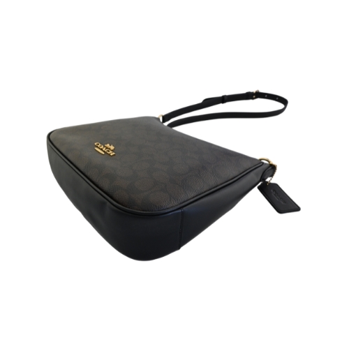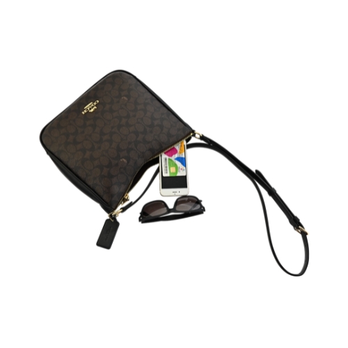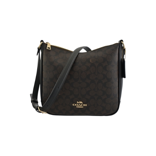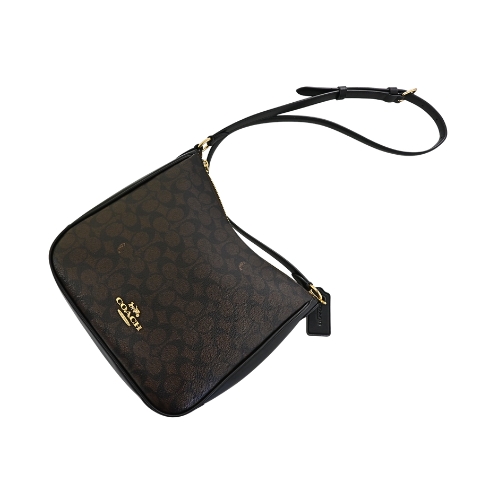 [平輸版] 【COACH】黑檀木色C LOGO防刮PVC 拼接黑色素面皮革拉鍊斜背扁包 真品平輸 | NearMe | 線上送禮平台『獨家支援 收禮者改選禮物』