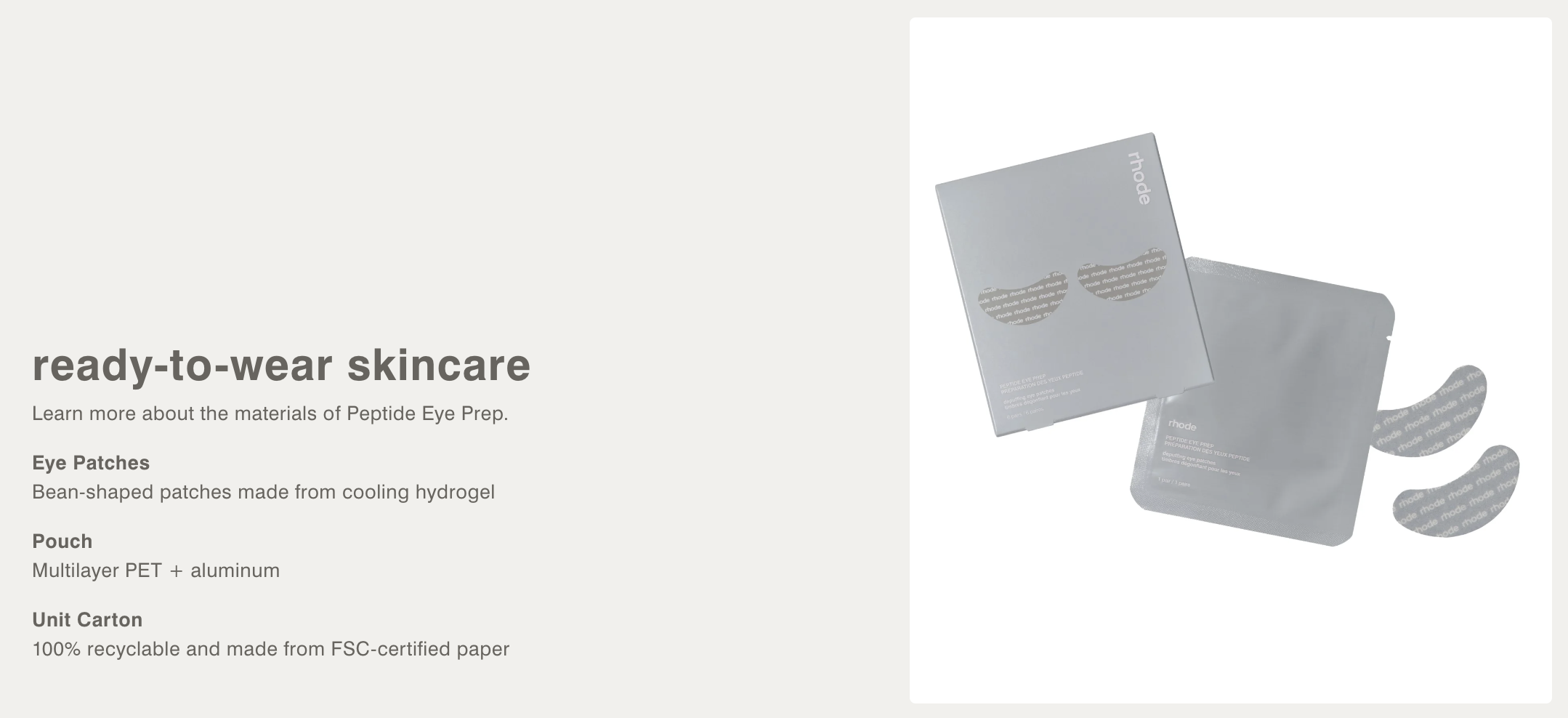Rhode 凝膠眼魔眼貼|妝前妝後都適用Peptide Eye Prep 為妳的眼周注入清新能量。這款冰涼水凝膠眼膜質地柔軟,能輕柔貼合眼下肌膚,提供保濕與舒緩呵護,使眼周呈現自然光采與柔潤感。無論是日常保養、妝前準備,或旅途中快速提亮雙眼,都是理想選擇。