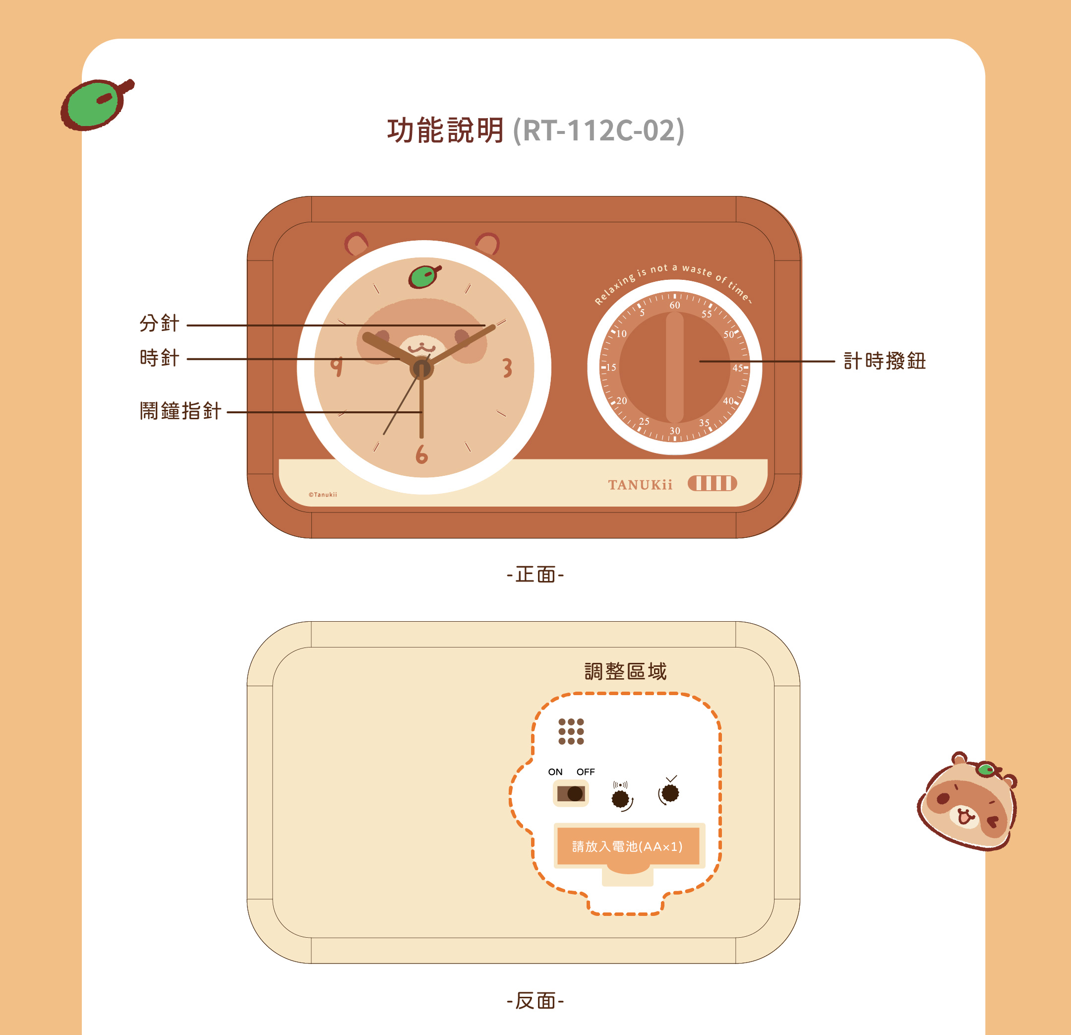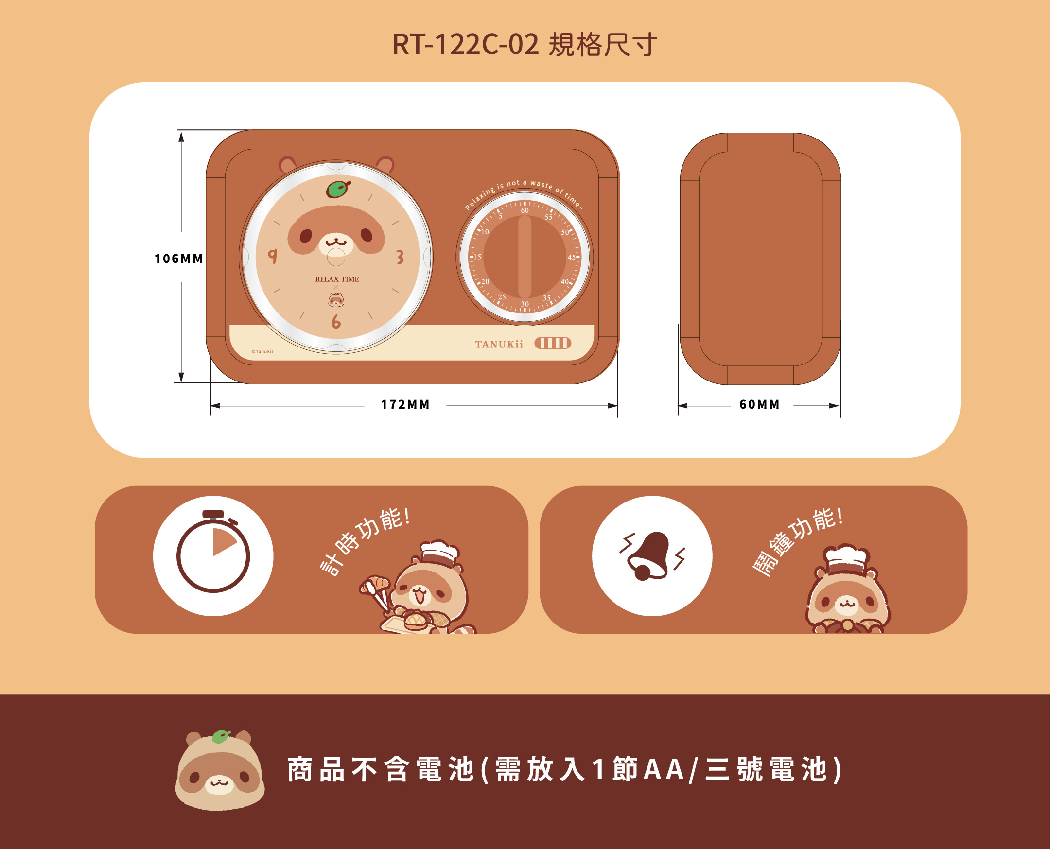 RELAX TIME 茶浣熊聯名 l 美味時光機 浣熊款 (RT-122C-01) l 不含電池 桌鐘 居家 禮物 鬧鐘 座鐘 檯鐘 床頭鐘 居家用品 生活選品 生活居家