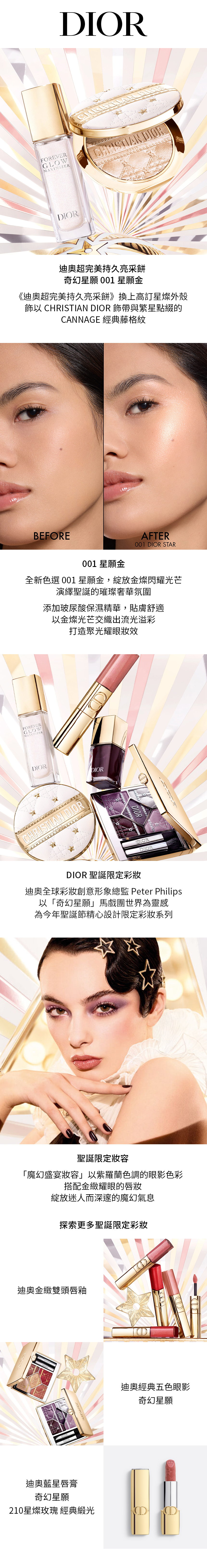 《迪奧超完美持久亮采餅》換上高訂星燦外殼,飾以CHRISTIAN DIOR飾帶與繁星點綴的CANNAGE經典藤格紋。全新色選 001星願金,綻放金燦閃耀光芒,演繹聖誕的璀璨奢華氛圍。