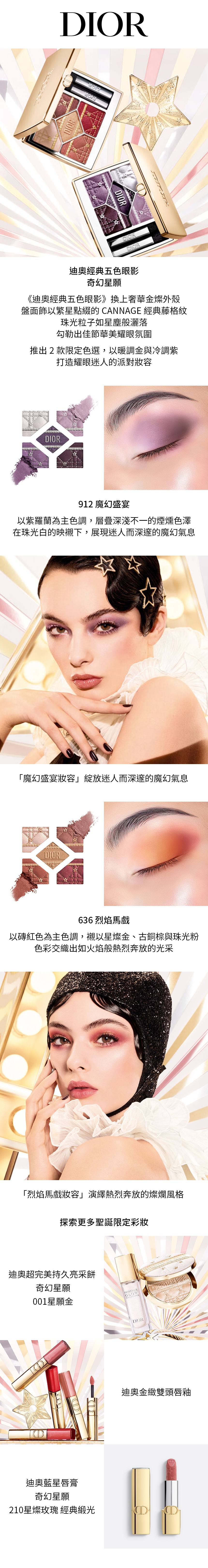 2款限定色選:636 烈焰馬戲、912 魔幻盛宴,分別以冷暖色調演繹華麗迷人眼妝,呈現令人驚艷的璀璨妝容。