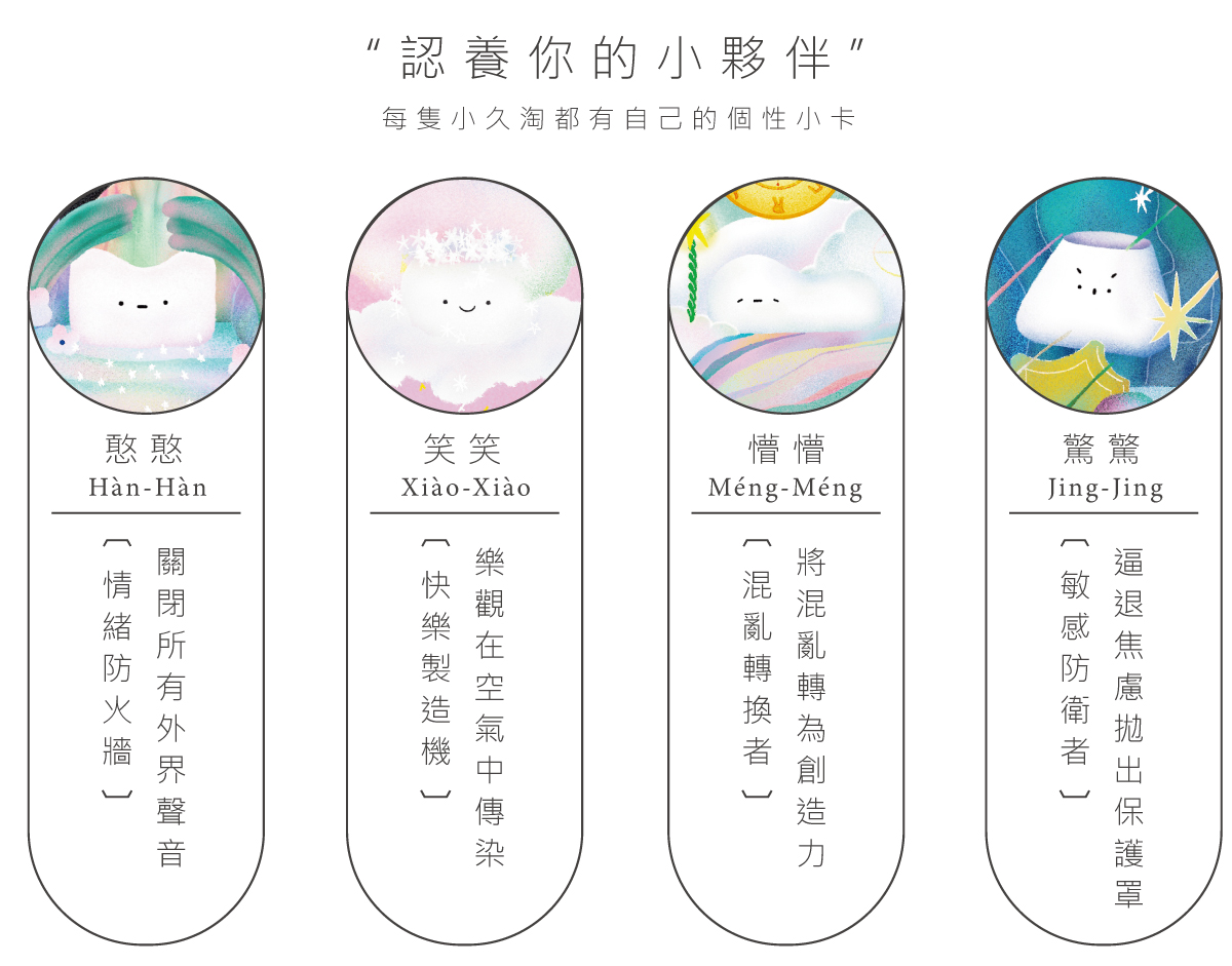 ● 小久淘就像個「可愛小廢物」般的存在一顆靜靜坐著的小石頭,渾圓的身形、淡淡的表情,像是在默默陪你度過每個努力的日子。