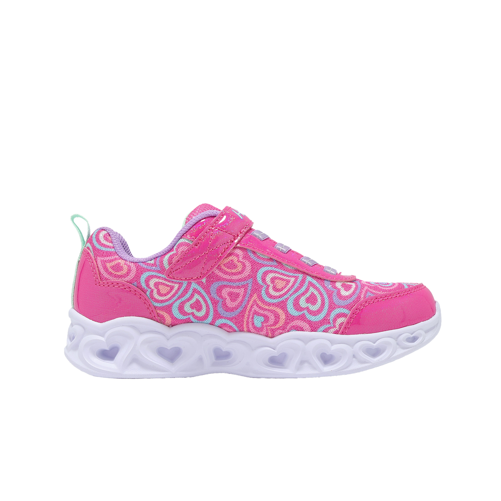 *中底愛心型刻紋雕刻設計,崁入五彩閃燈,踏出的每一步都有愛心閃爍相伴。