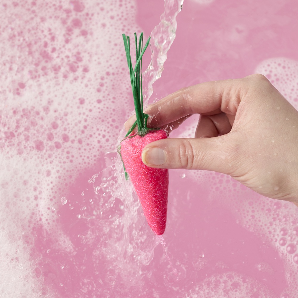 禮盒內容:活力公雞汽泡彈復活金蛋汽泡彈貪吃小兔汽泡彈七色蘿蔔泡泡浴芭 — 粉紅色