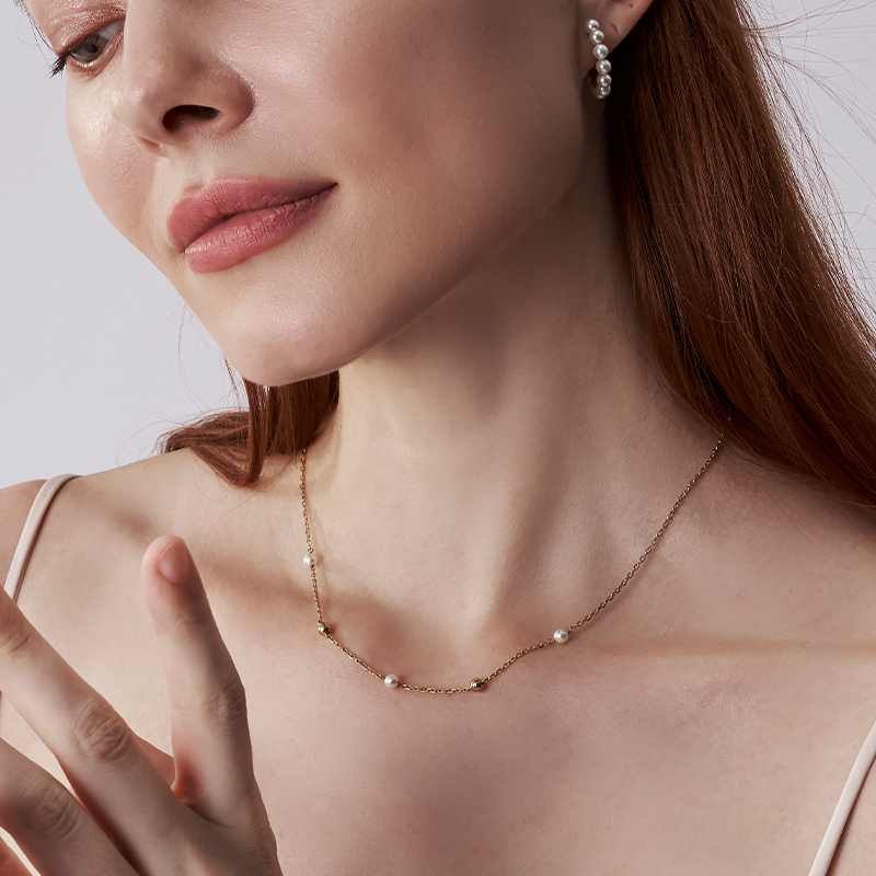 串連金球與珍珠,在經典中注入靈動變化的項鍊。以匠心工藝手工打造,