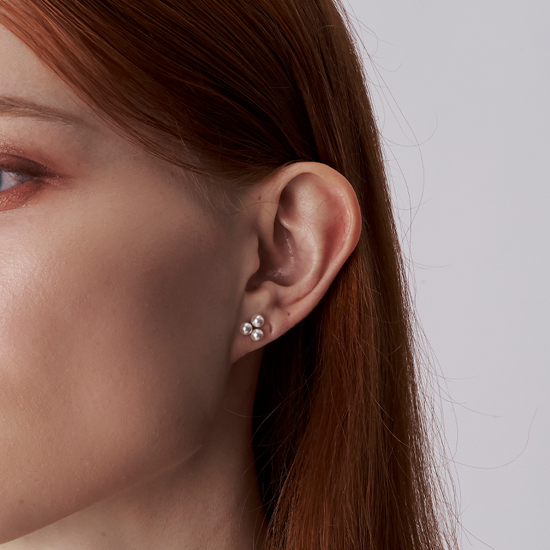 簡約經典的4mm珍珠耳環,比鄰排列象徵時間與個人故事的交織