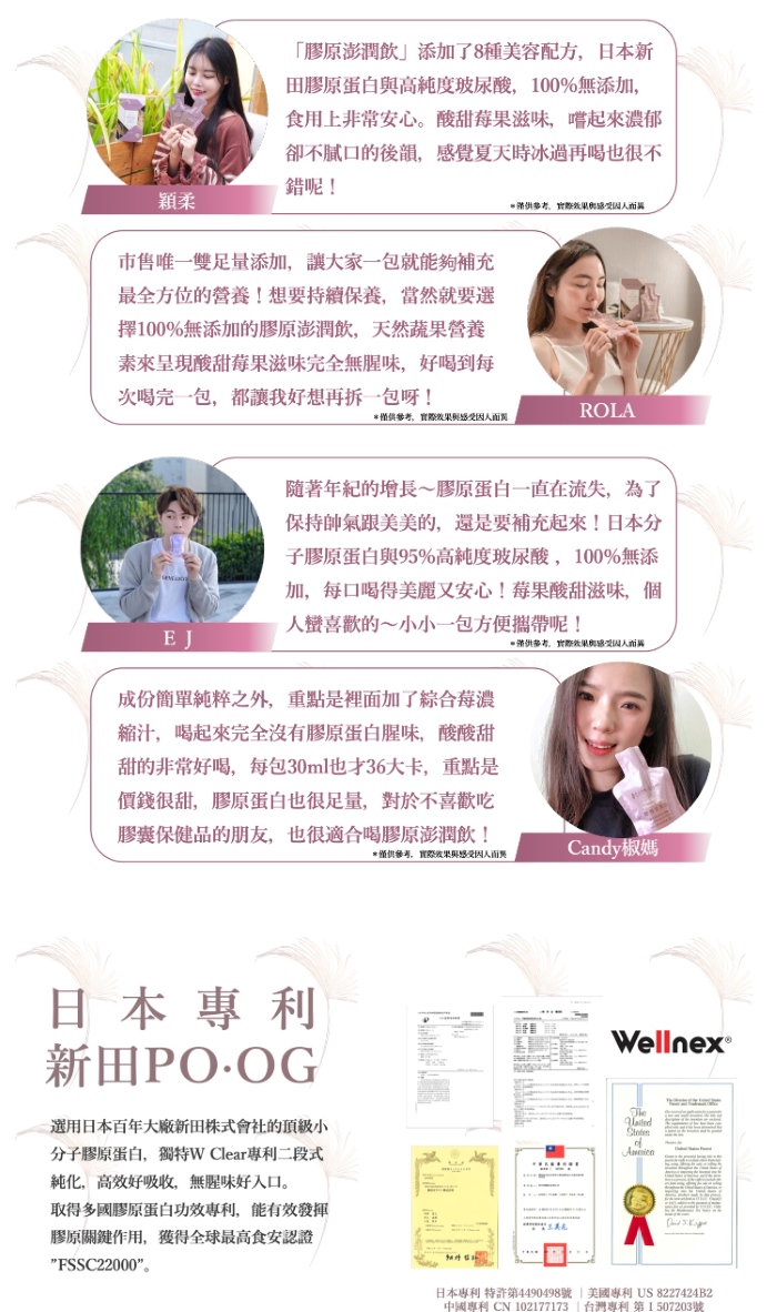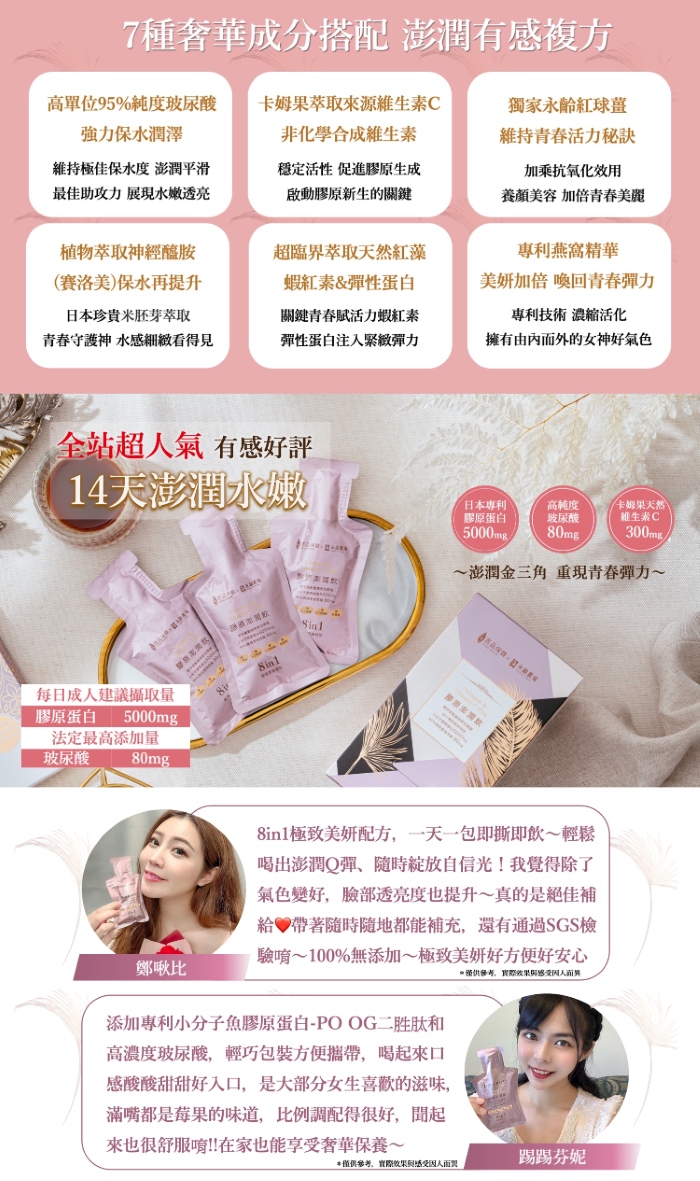 日本專利魚膠原蛋白+7種奢華複方成分搭配。