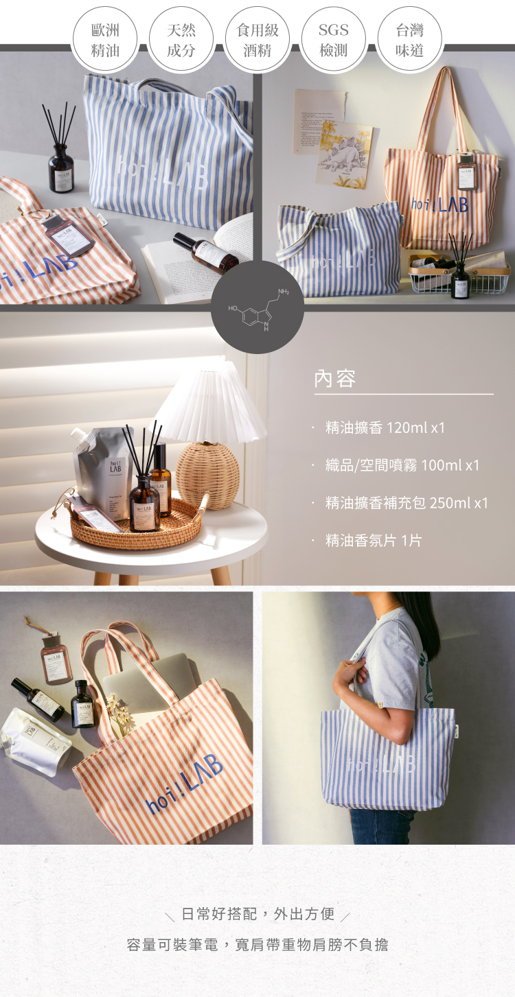 禮盒內容物:120ml 擴香*1250ml 精油補充包*1100ml 織品噴霧 *1品牌香氛片 *1 品牌純棉購物袋 *1