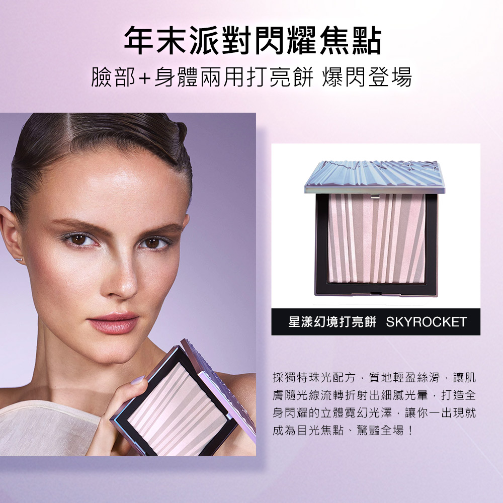 NARS全新身體x臉部兩用打亮餅!採獨特珠光配方,輕掃即現細緻碎閃珠光,使全身閃耀夢幻銀河光采,一抹即是全場焦點NARS全新「星漾幻境打亮餅」,採獨特珠光配方,讓肌膚呈現絕美碎閃光澤,