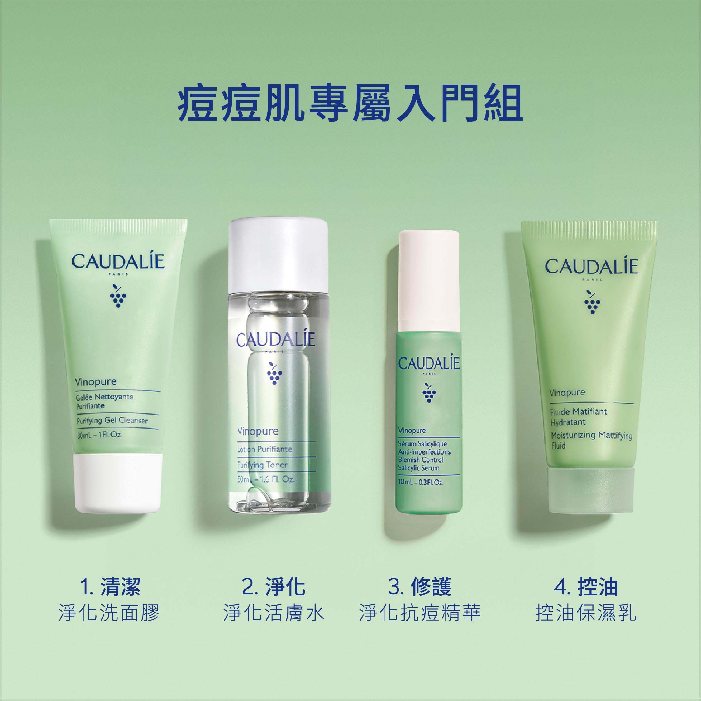 商品內容名稱:【Caudalie歐緹麗】葡萄籽毛孔淨化入門組從 葡萄籽毛孔淨化系列 四步驟旅行組開始,開啟你的淨化保養程序。此組合方便攜帶,無論在家或外出皆可使用,是體驗此系列的完美入門款。葡萄毛孔淨化洗面膠 30ml深層清潔、緊緻毛孔、去除多餘皮脂,同時不造成乾燥。葡萄毛孔淨化活膚水 50ml緊緻毛孔、減少瑕疵,明顯改善肌膚油光。肌膚潔淨、清透、呈現霧面膚質。葡萄籽淨化抗痘精華 10ml無反彈效果溫和改善瑕疵,暢通並收斂毛孔,細緻肌膚。葡萄籽抗痘控油保濕乳 15ml減少瑕疵與多餘油脂。不再泛油光,保濕肌膚、展現清爽健康透亮。配方特色不致粉刺、經皮膚科測試認證、純素配方、不含 PEG、不含合成香料肌膚類型:混合性至油性肌膚需求:易長痘肌膚主要成分:天然水楊酸、菸鹼醯胺、葡萄多酚使用時間:早晚皆可