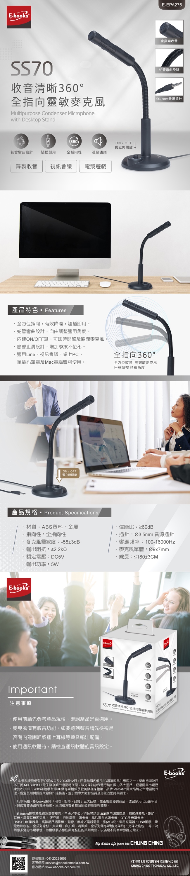 E-books SS70收音清晰360度全指向靈敏麥克風