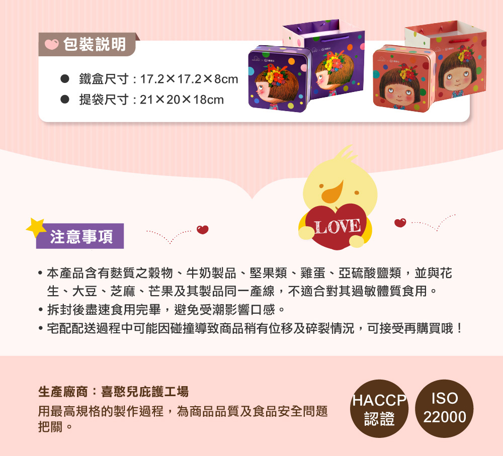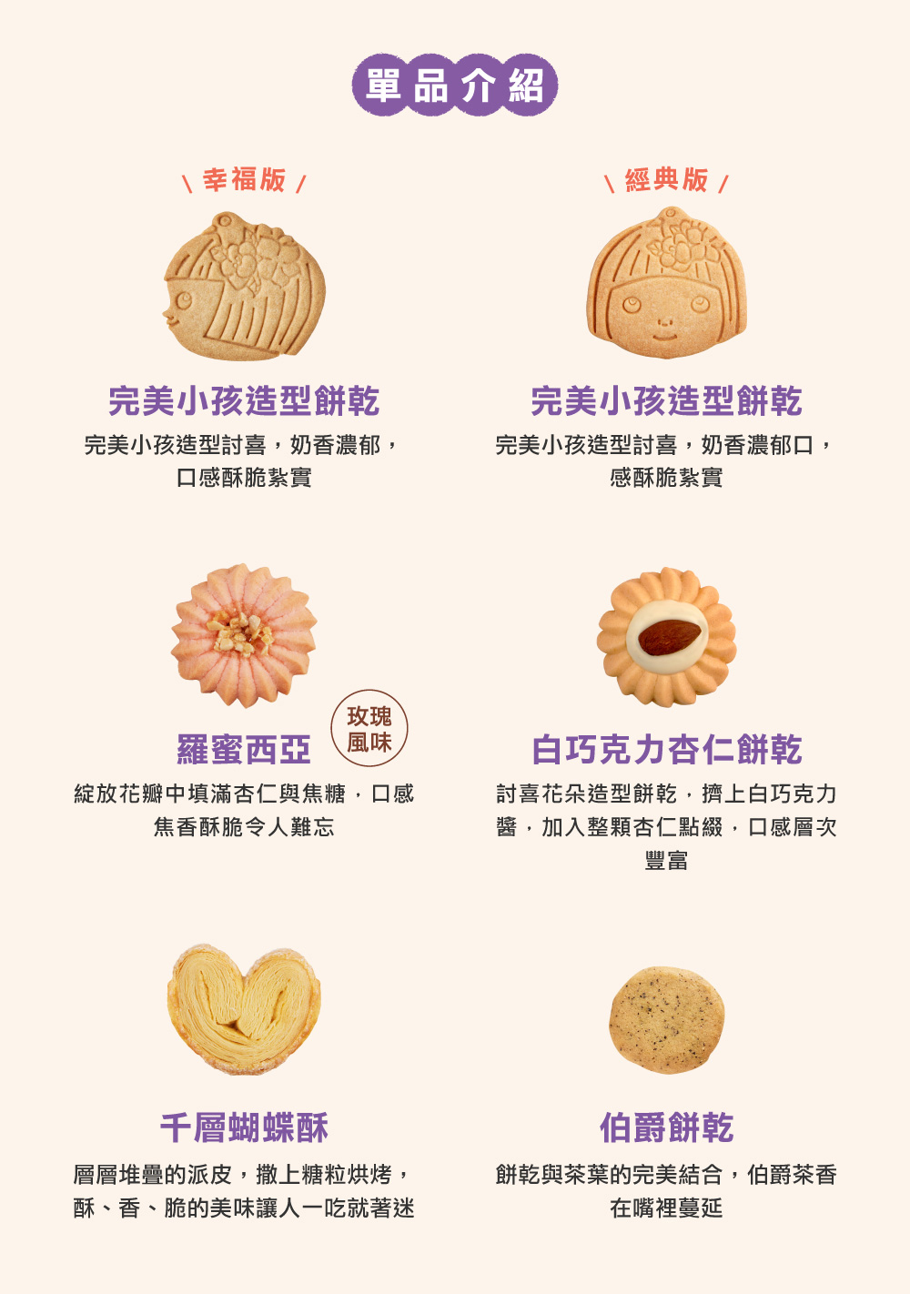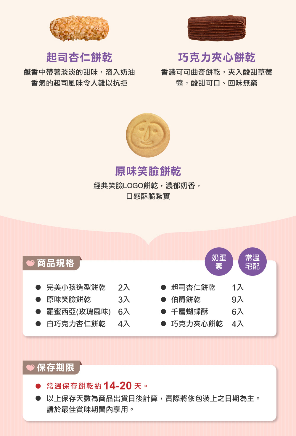 ✦週日宅配停止收送服務,恕無法指定週日、週一送達✦運送過程中可能因碰撞導致餅乾稍有位移或碎裂情況 ,可接受再購買✦不提供外島配送服務