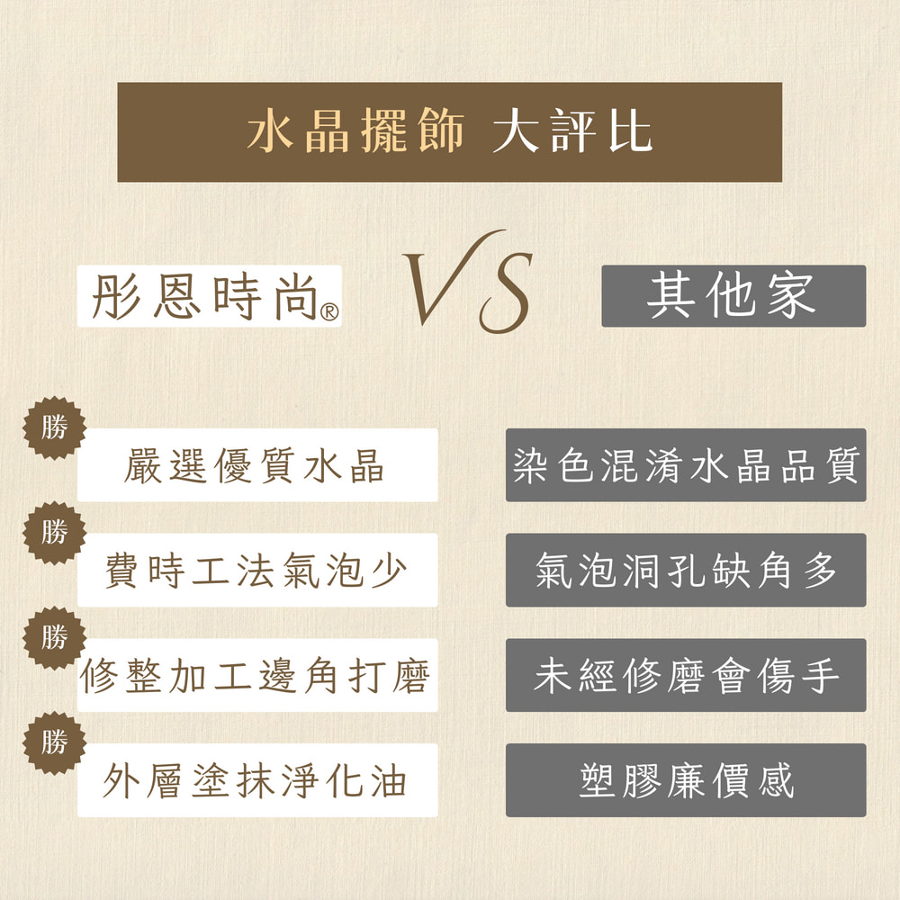 • 手作物品必定會有手作痕跡,氣泡與洞孔均屬滴膠製品的正常現象,我們為力求成品的完美,已耗時3倍以上的製程,保證不會有大洞孔或表面不平整的狀況,但仍無法完全避免小氣泡或小洞孔,較明顯處的洞孔會採後加工補平的方式處理,部分水晶也有可能使觸摸表面時有浮凸感。